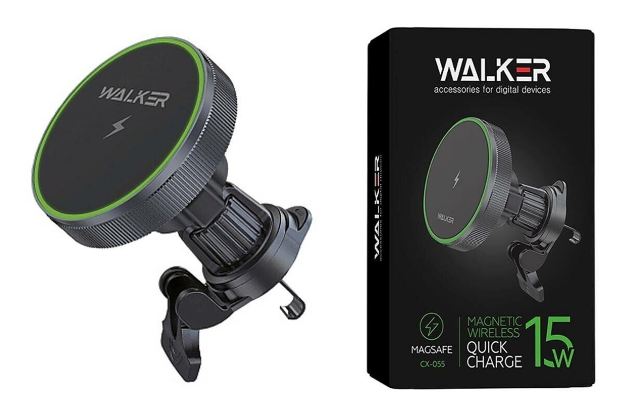 Этот универсальный держатель WALKER CX-055 сочетает в себе крепление, магнитную фиксацию и беспроводную зарядку, обеспечивая комфорт и безопасность во время поездки.