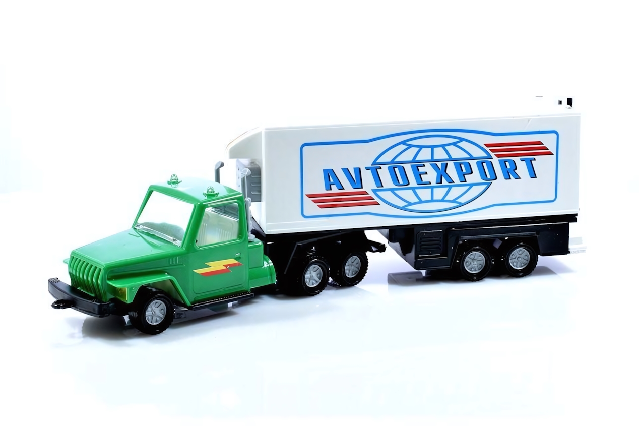Почему стоит выбрать именно этот автофургон? Во-первых, он изготовлен из качественного пластика, что гарантирует долговечность и безопасность. Во-вторых, яркий зеленый цвет с желтой наклейкой и белый прицеп с синей надписью 'AVTOEXPORT' делают игрушку привлекательной для детей. Кроме того, такая игрушка способствует развитию креативности и воображения, позволяя детям создавать свои собственные истории.