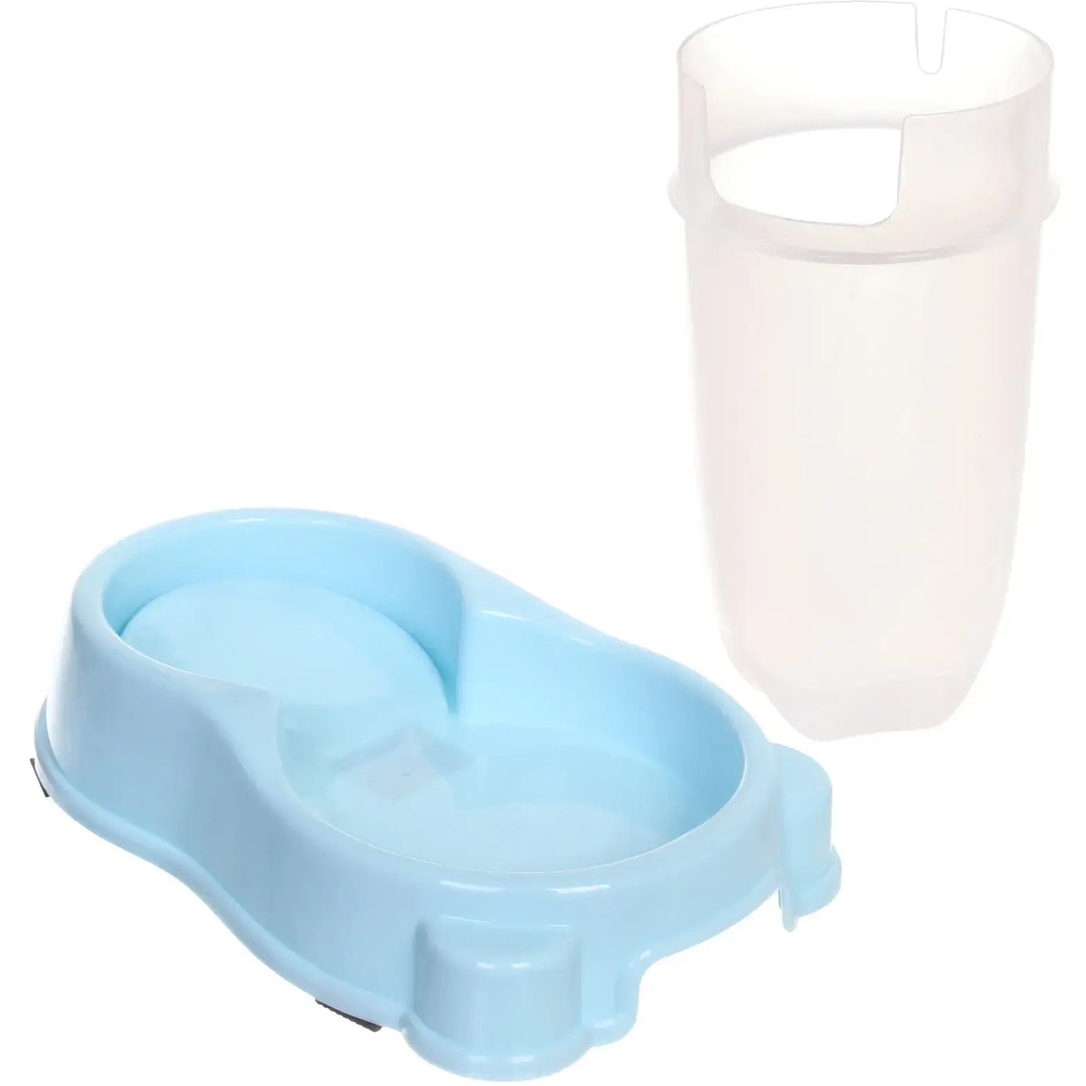 Изделие выполнено из пищевого пластика нежно-голубого цвета. Овальная форма с закругленными краями исключает травмы. Прозрачный резервуар позволяет контролировать уровень корма без открытия крышки.