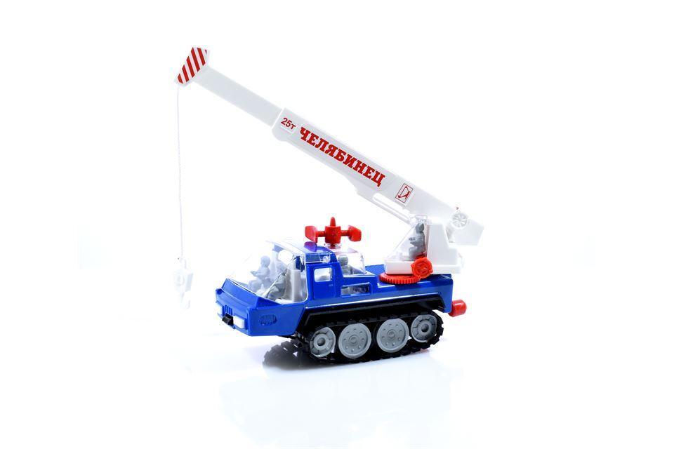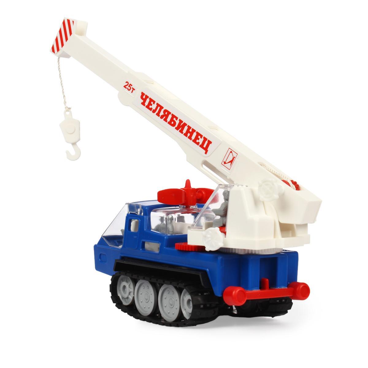 Игрушечный кран «Челябинец 25т» с подвижной стрелой, сине-белый, пластик, для сюжетных игр
