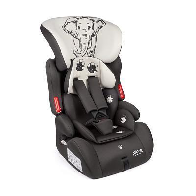 Автокресло КОСМО Lux "Animals" слон, группа 1+2+3, серый-бежевый, Siger