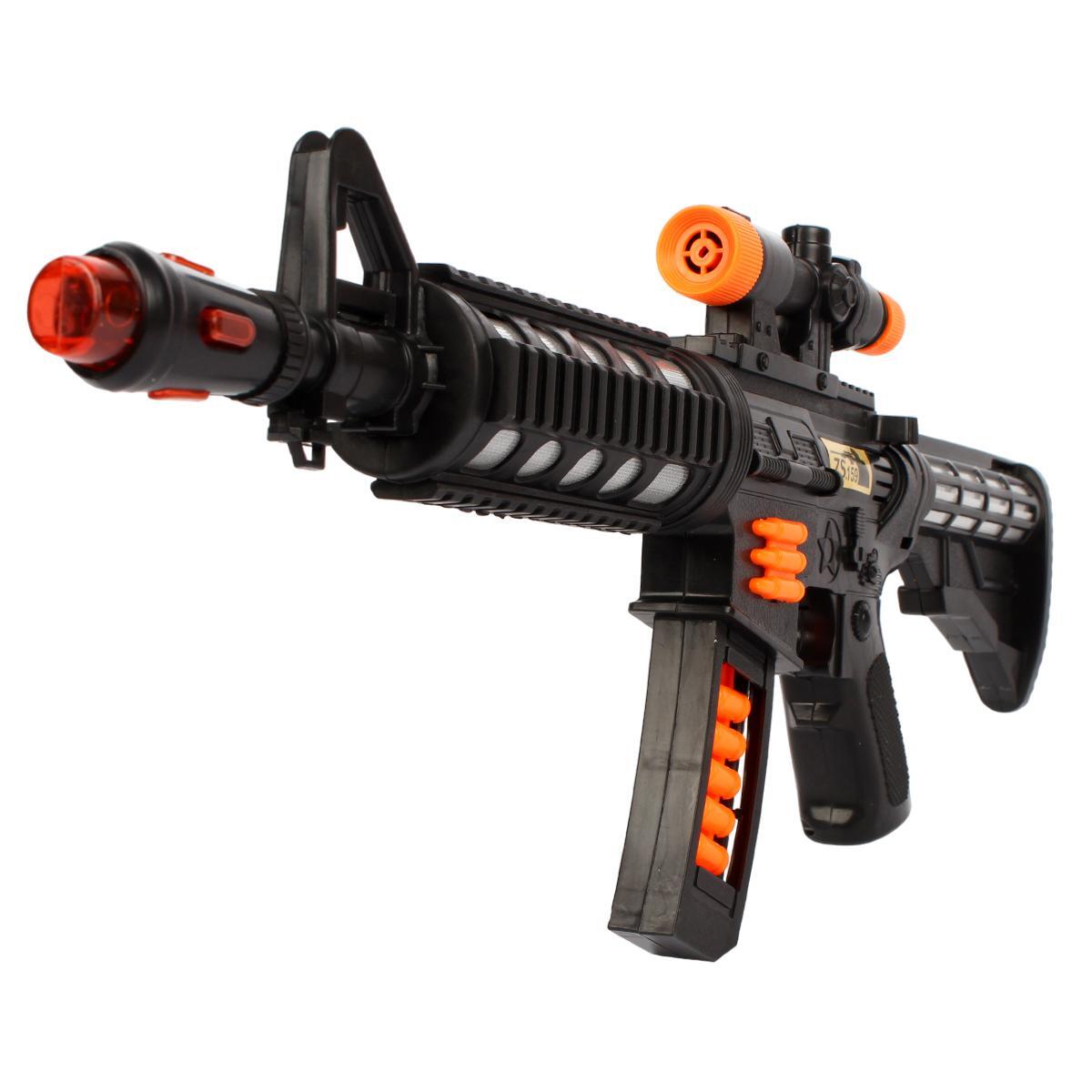 Этот игрушечный автомат длиной 51 см создан для активных игр и фантазий детей. Благодаря световым и звуковым эффектам он превращает обычную игру в яркое приключение и способствует развитию воображения. Игрушка идеально подходит для детей от 3 лет, позволяет безопасно играть как дома, так и на улице.