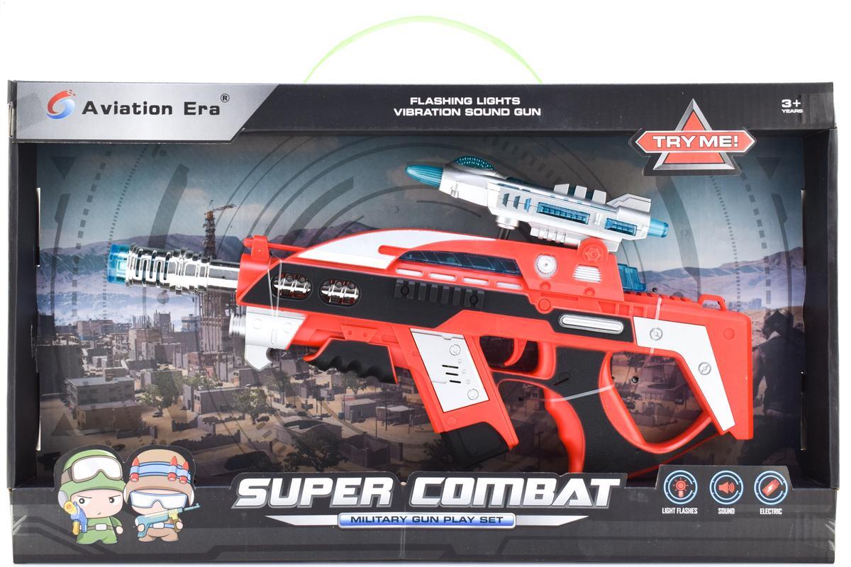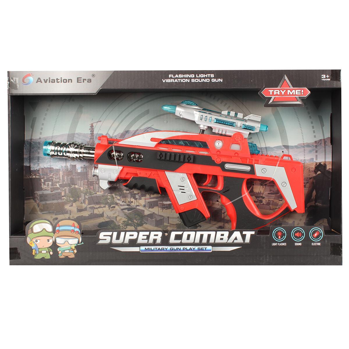 Автомат детский "Super Combat", пластик, красный/черный, со светом и звуком
