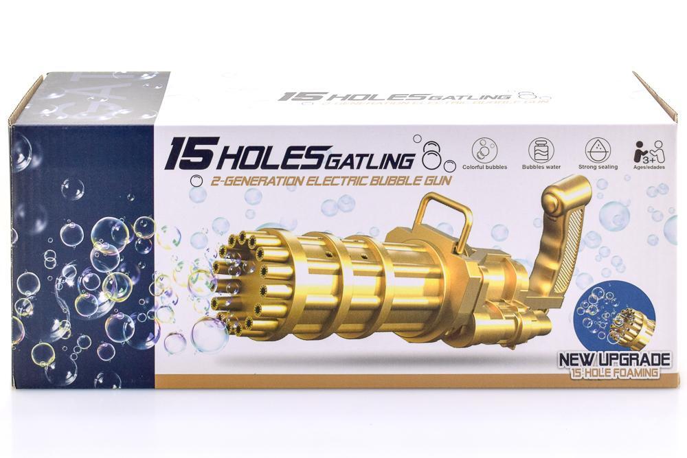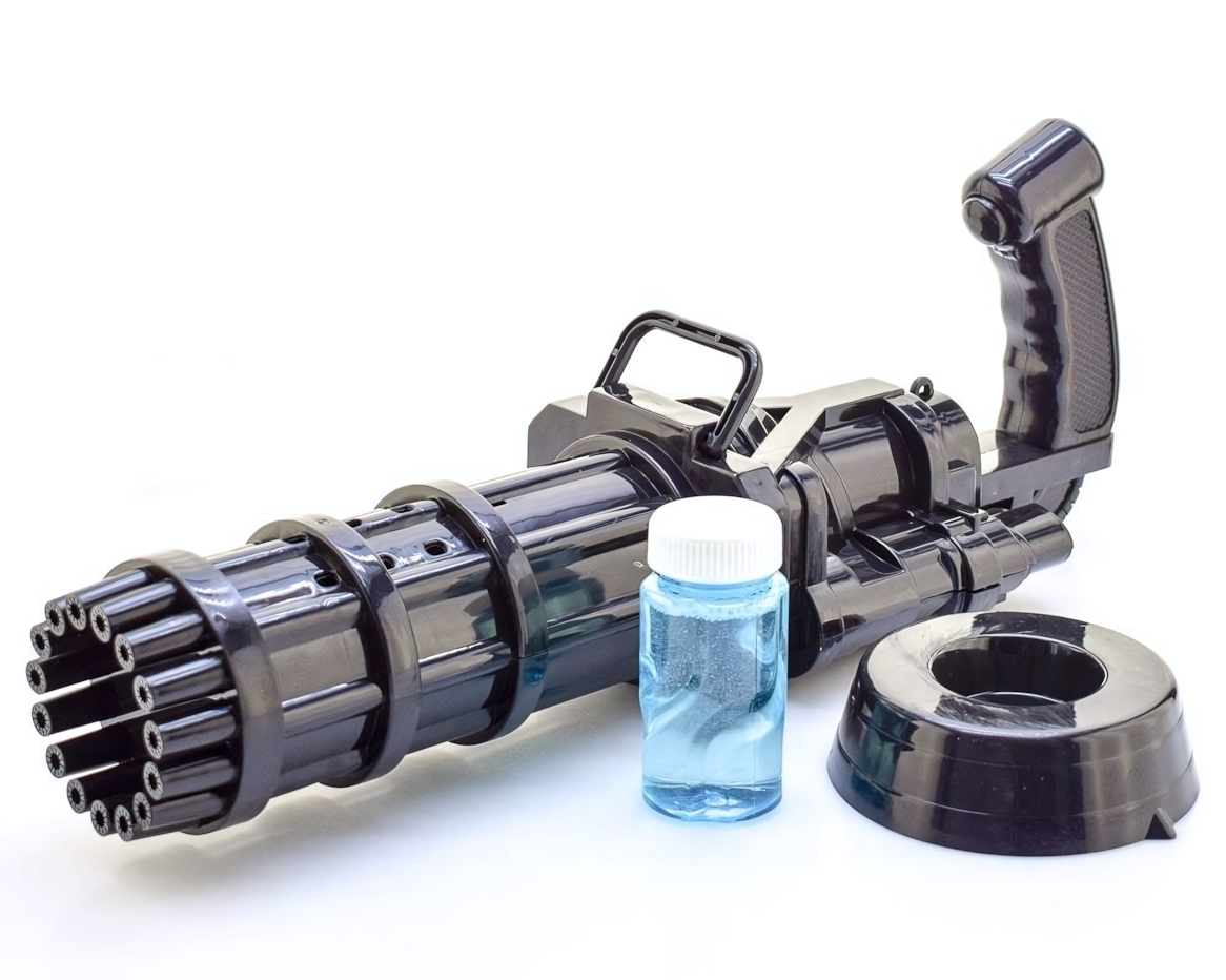 Электрический автомат для мыльных пузырей "15 Holes Gatling" превратит любой день в праздник. Безопасная игрушка из прочного пластика с реалистичным дизайном подарит часы активных игр, развивая воображение и моторику ребенка.