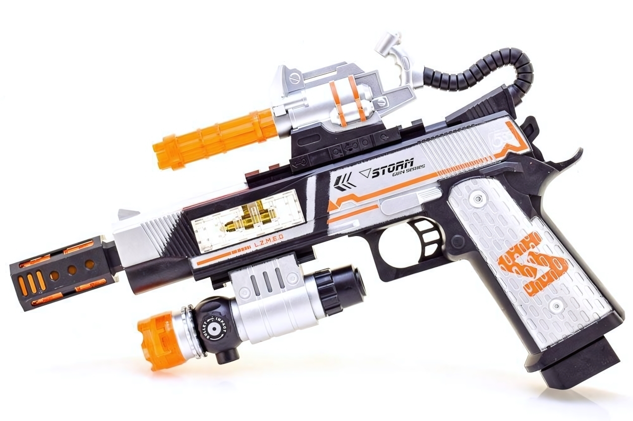 Игрушечный автомат «STORM GUN SERIES» со светом и звуком, 32х22х4см, черный, серебристый