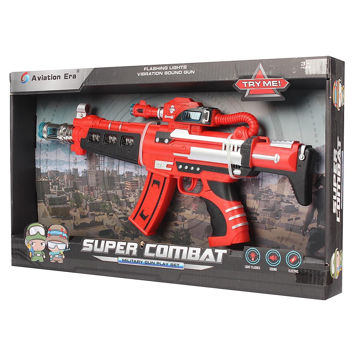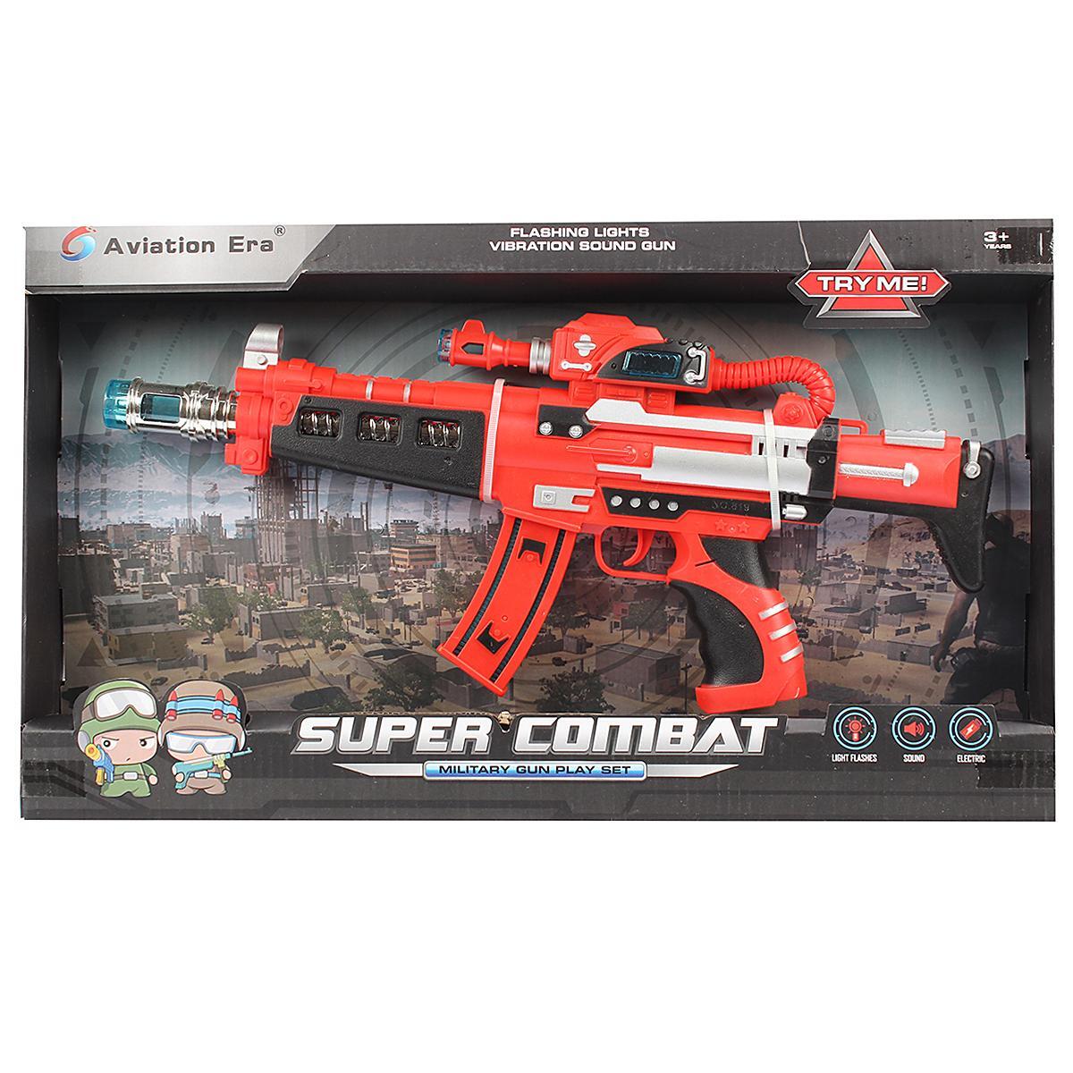 Автомат игрушечный "Super Combat" красный/черный, звук/свет, пластик, для детей 3+