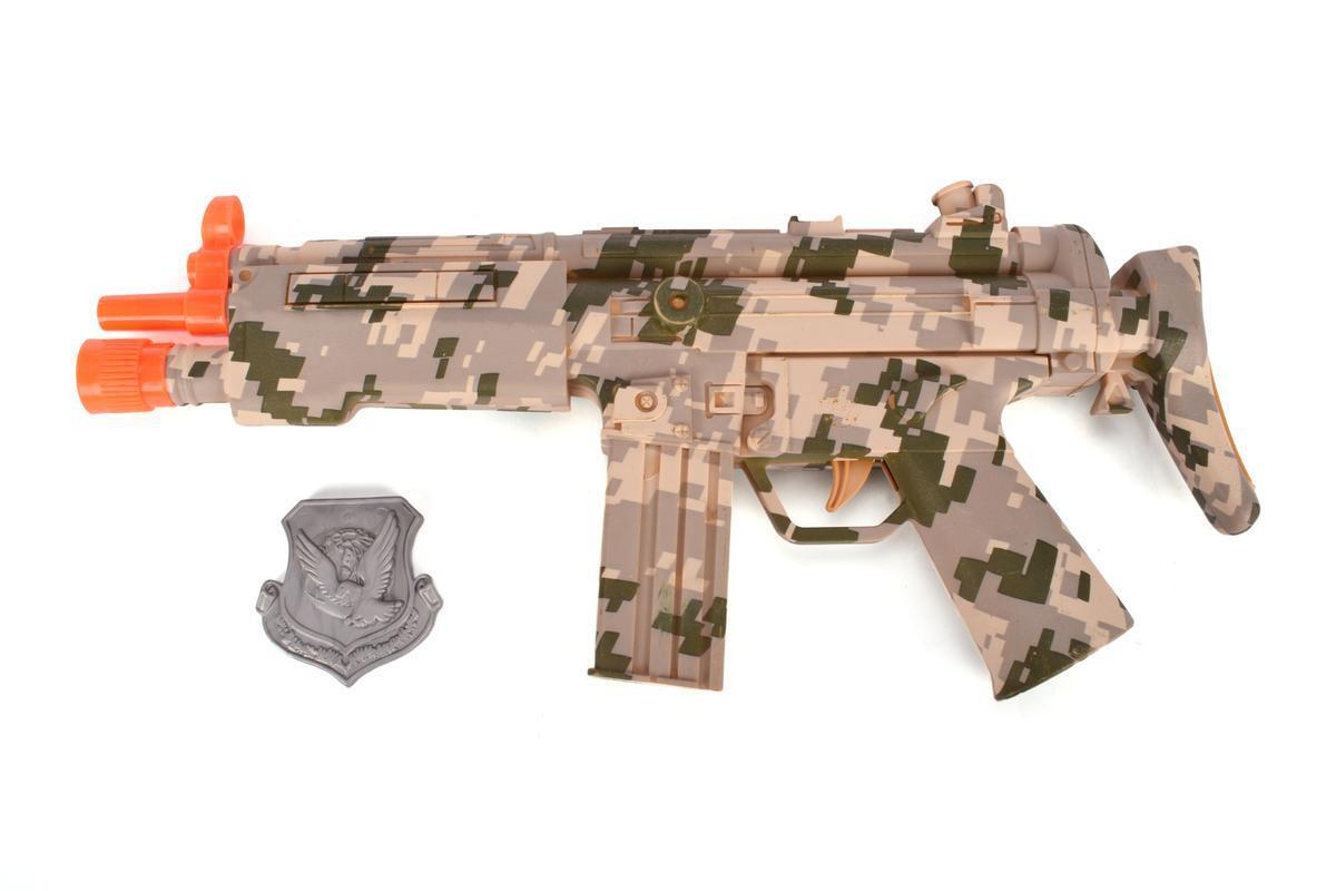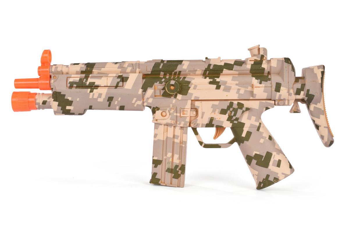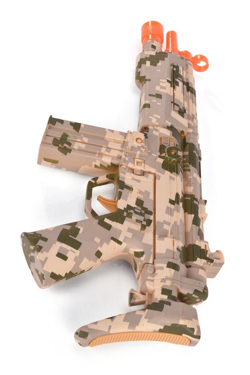 Автомат выполнен из прочного пластика, безопасного для детей, и обладает удобной формой с имитацией настоящего оружия, что делает игру максимально реалистичной. Размеры позволяют легко держать его в руках и брать с собой на прогулки или на игровую площадку. Отсутствие батареек в комплекте — возможность выбрать наиболее подходящий тип элемента питания, а также экономия.