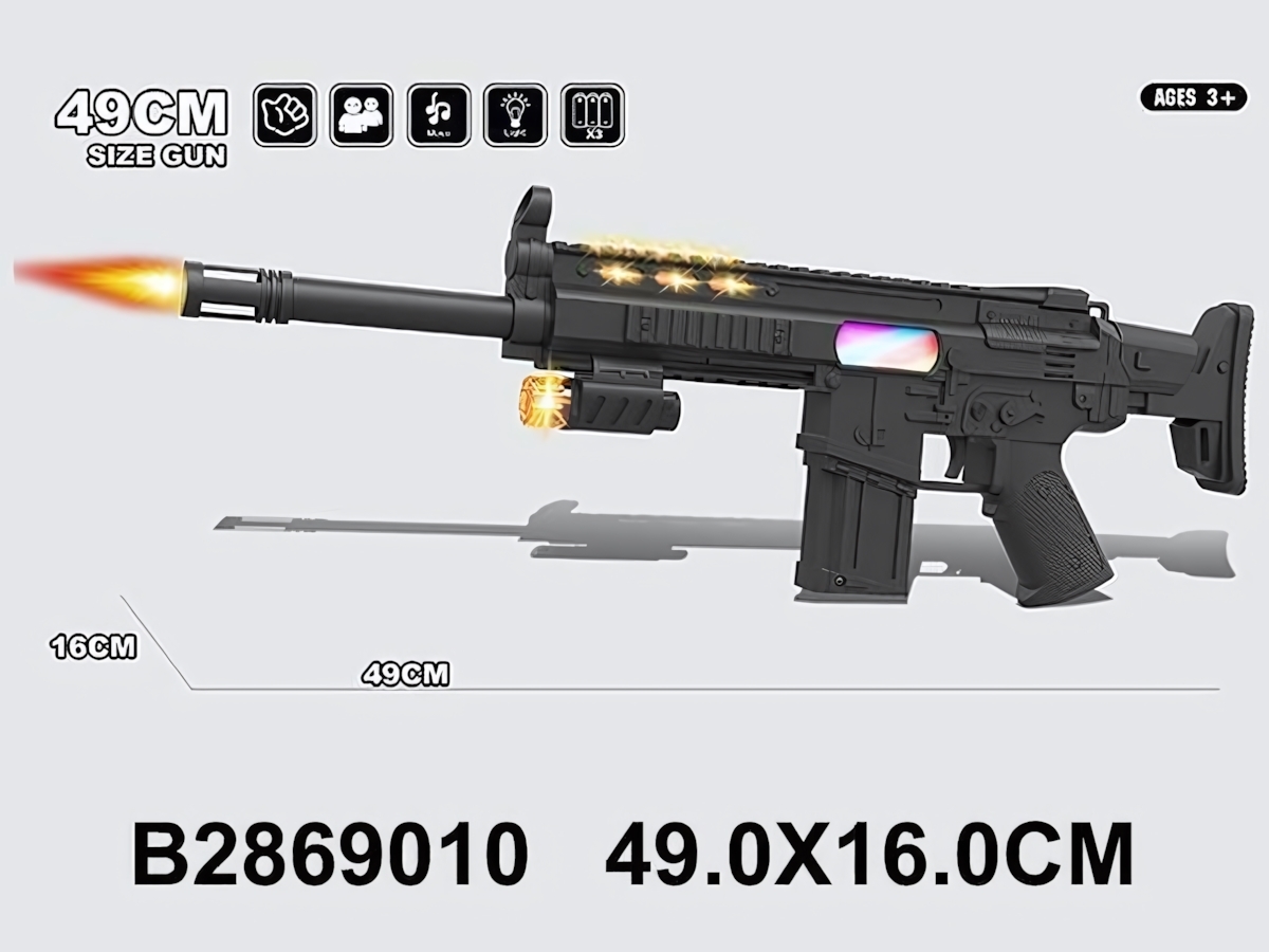 Автомат игрушечный на батарейках, 49х16см, свет/звук, пластик