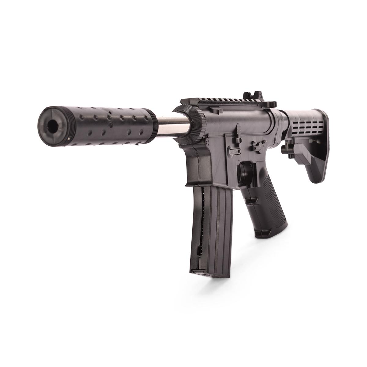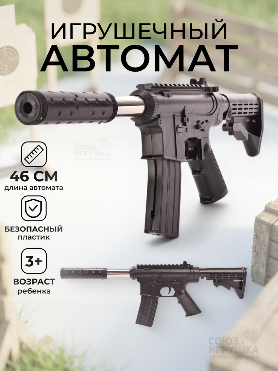 Размер упаковки составляет 47,0 * 16,5 * 4,0 см, что делает его удобным для хранения и транспортировки. Игрушечный автомат представлен в черном цвете и имеет текстурированную рукоятку для удобства удержания. Он станет не только игрушкой, но и верным спутником в играх на свежем воздухе.