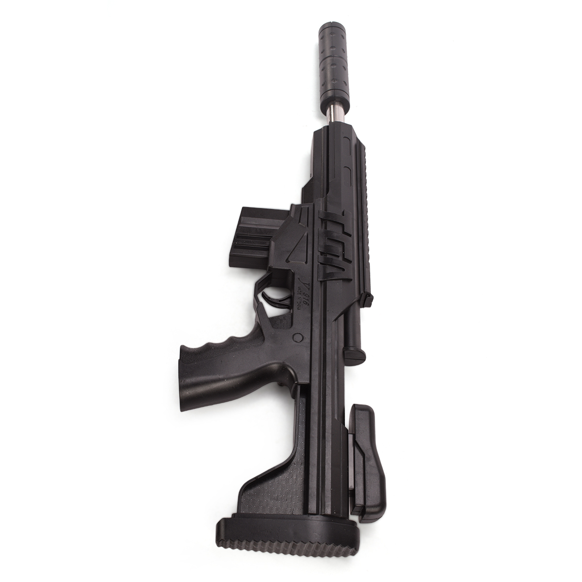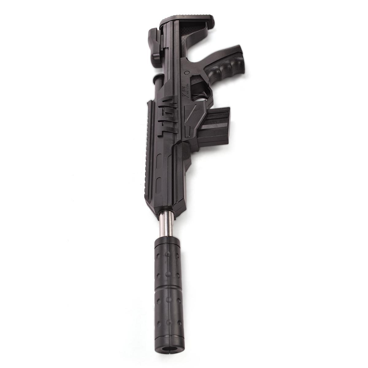 Технические характеристики: общая длина 42 см, ширина 10 см, высота 3 см. Модель оснащена съемным магазином и регулируемым прикладом.