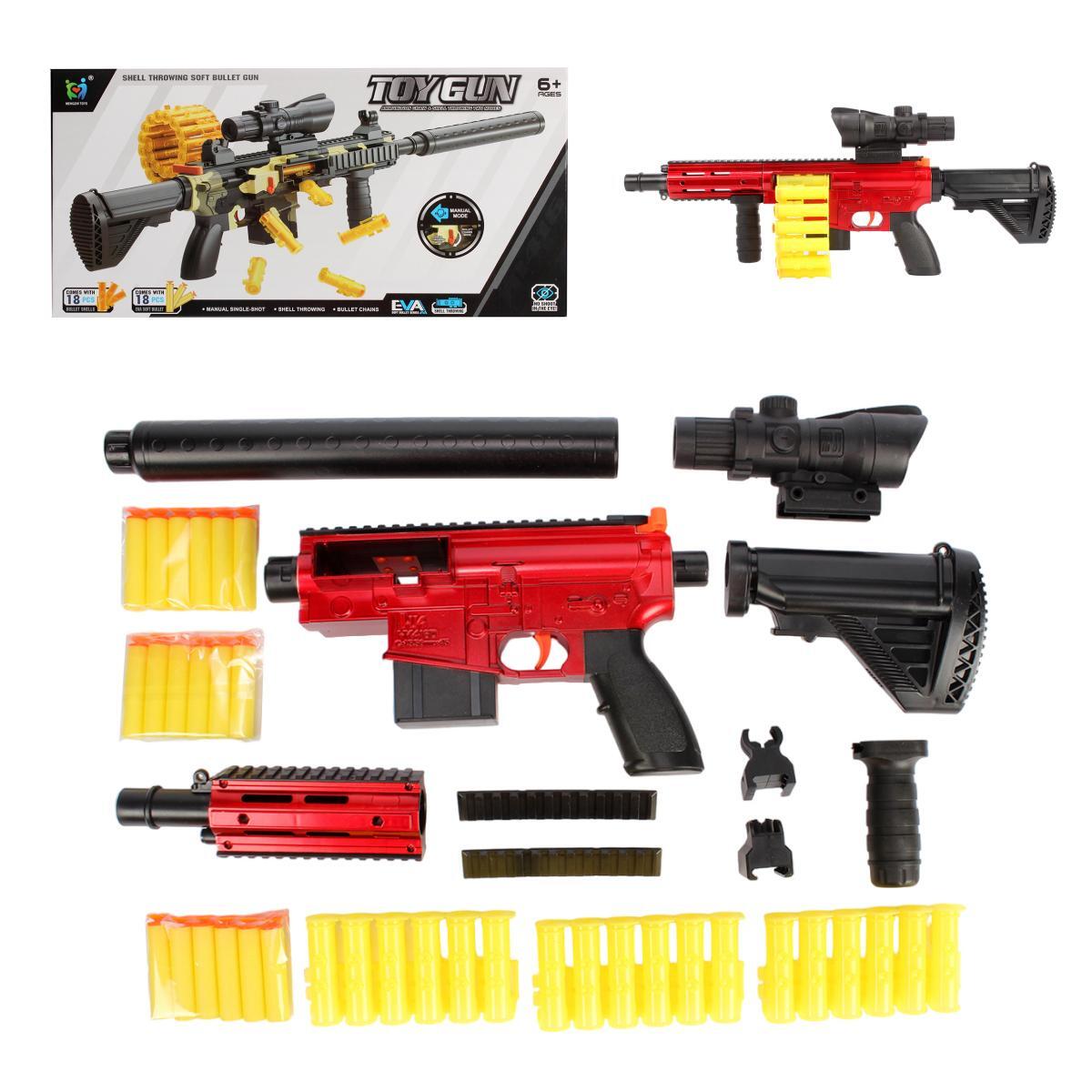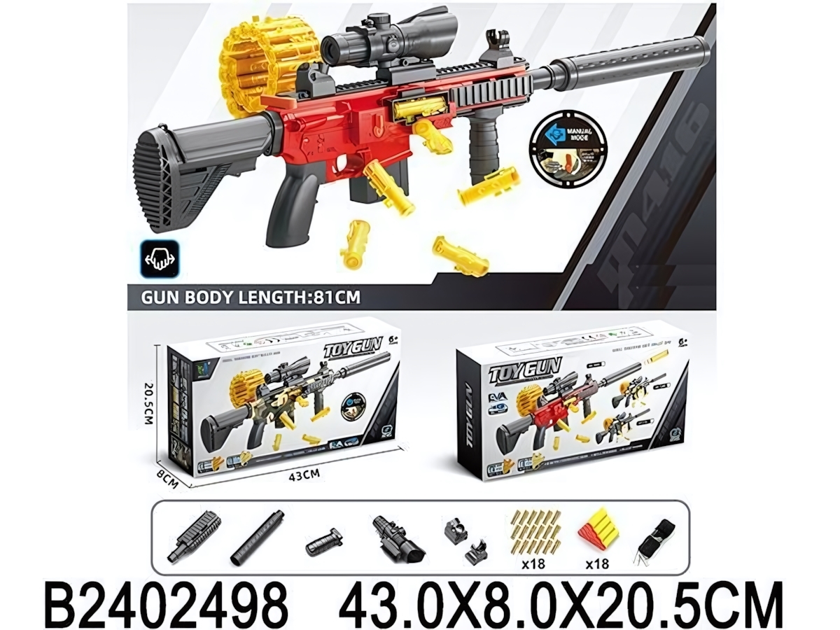 Автомат игрушечный с мягкими пулями, длина 81см, пластик, цвета микс