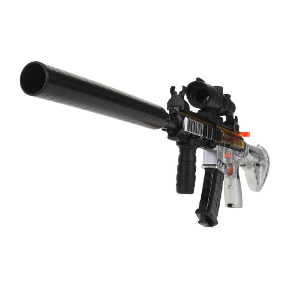 Почему стоит выбрать именно этот автомат? Во-первых, он выполнен в черном и серебристом цветах, что придает ему стильный и современный вид. Во-вторых, наличие оптического прицела и дополнительных аксессуаров, таких как удлиненный ствол и приклад, делает игру еще более захватывающей. Кроме того, автомат легкий и удобный в использовании, что позволяет детям легко управлять им во время игры.