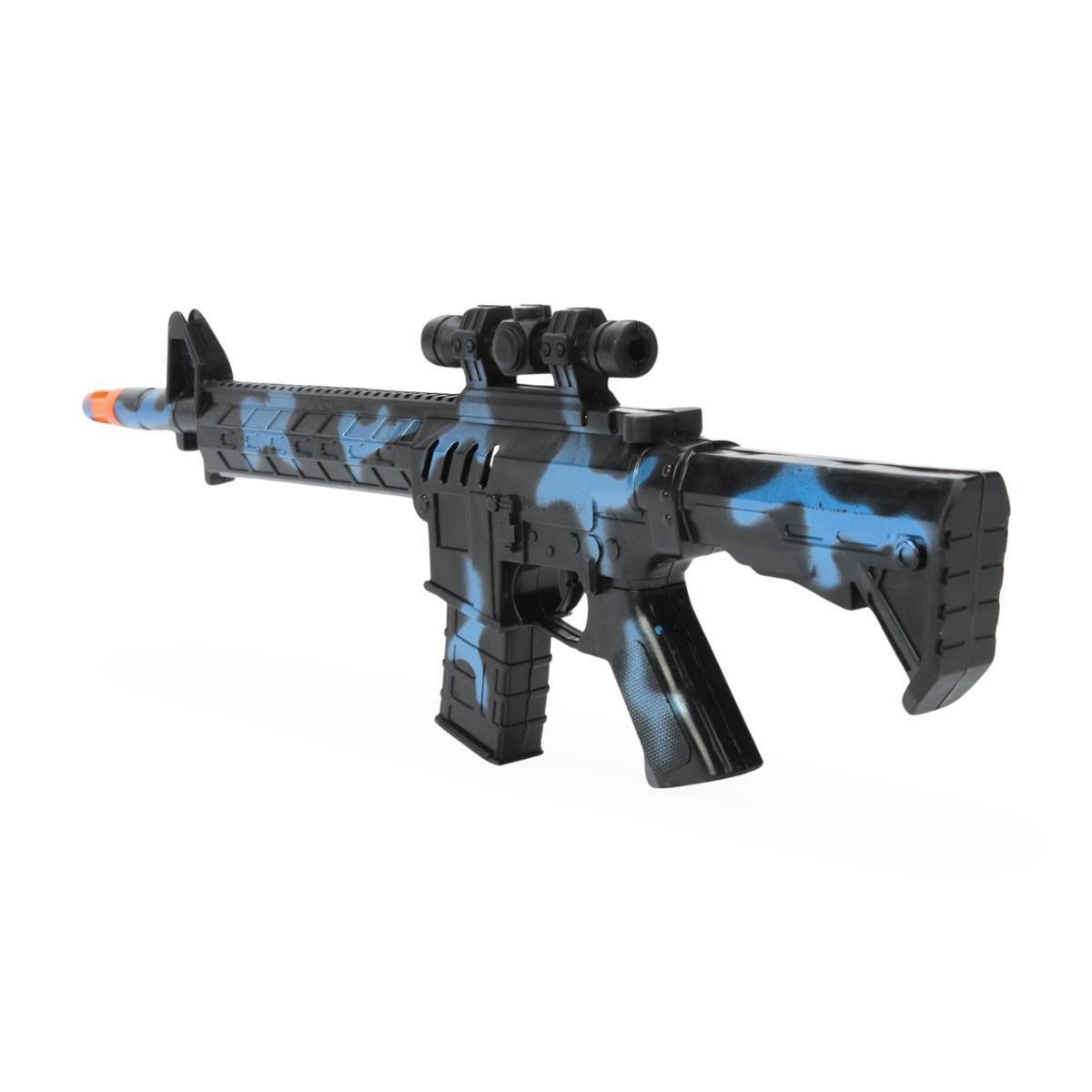 Автомат-трещетка детский 66 см, пластик, звук выстрела, черно-синий камуфляж