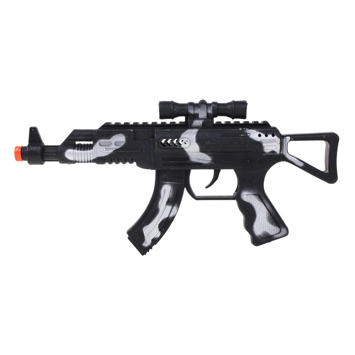 Погрузите ребёнка в мир увлекательных приключений с игрушечным автоматом-трещеткой, выполненным из прочного пластика и украшенным стильным камуфляжным узором. Эта модель сочетает реалистичный дизайн и полную безопасность, а эффектная детализация корпуса, магазина и приклада делает игру ещё более захватывающей.