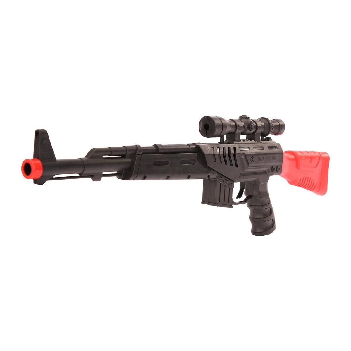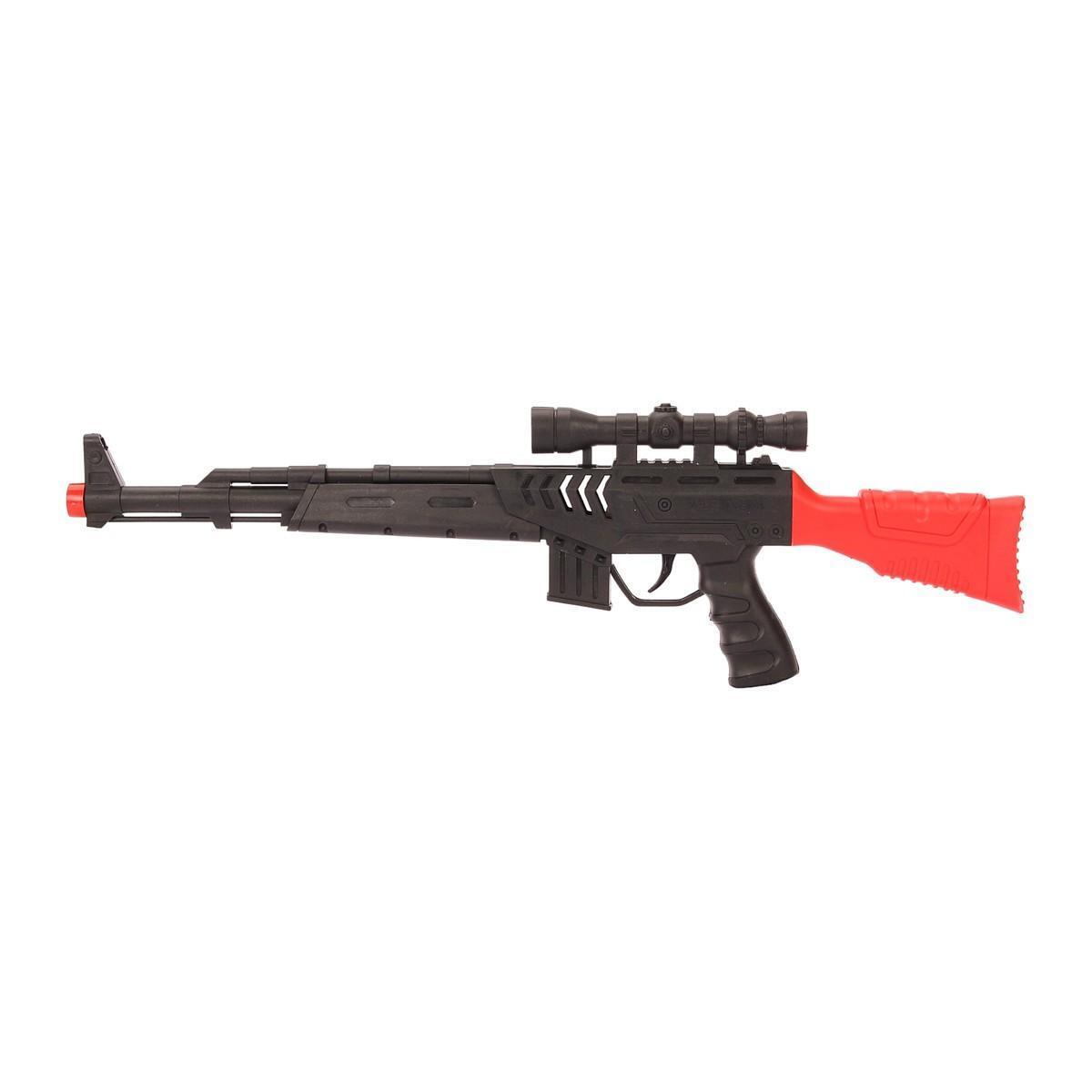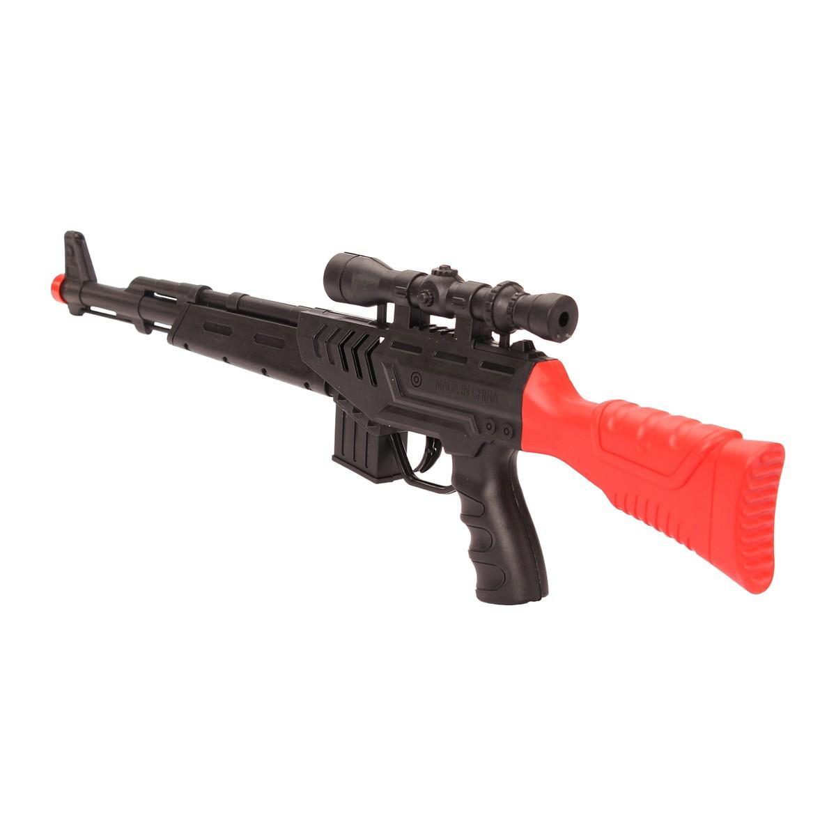 Превосходное развлечение для детей и подростков — игрушечная винтовка-автомат из прочного пластика, созданная для безопасных игр и активного отдыха. Ее реалистичный дизайн с красными акцентами и прицелом позволяет имитировать настоящее оружие, стимулируя воображение и развитие моторики у ребенка. Размер упаковки 37,7х2х11 см делает ее удобной для хранения и переноски, а материалы — безопасными и долговечными.