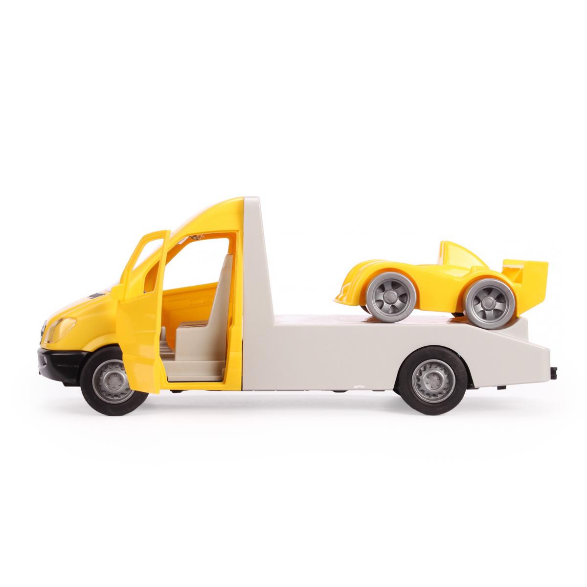 Игрушка Mercedes-Benz Sprinter, 1:24, желтый, с гоночным авто