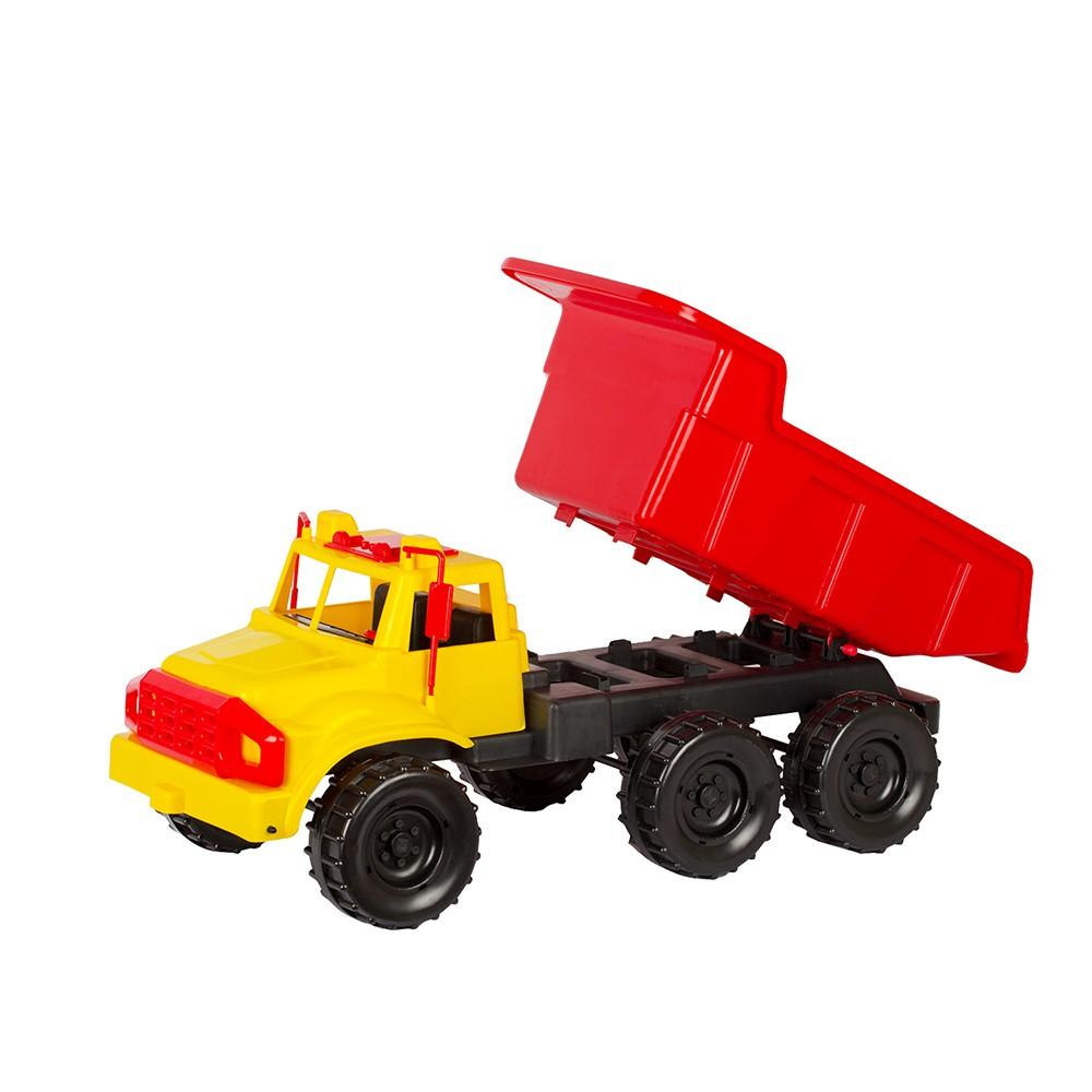 Яркий самосвал с поднимающимся кузовом станет любимой игрушкой для ребенка от 3 лет. Прочная конструкция из пластика выдержит активные игры во дворе и дома, а крупные размеры (83х35х37 см) позволяют перевозить песок, мелкие игрушки и другие «грузы».