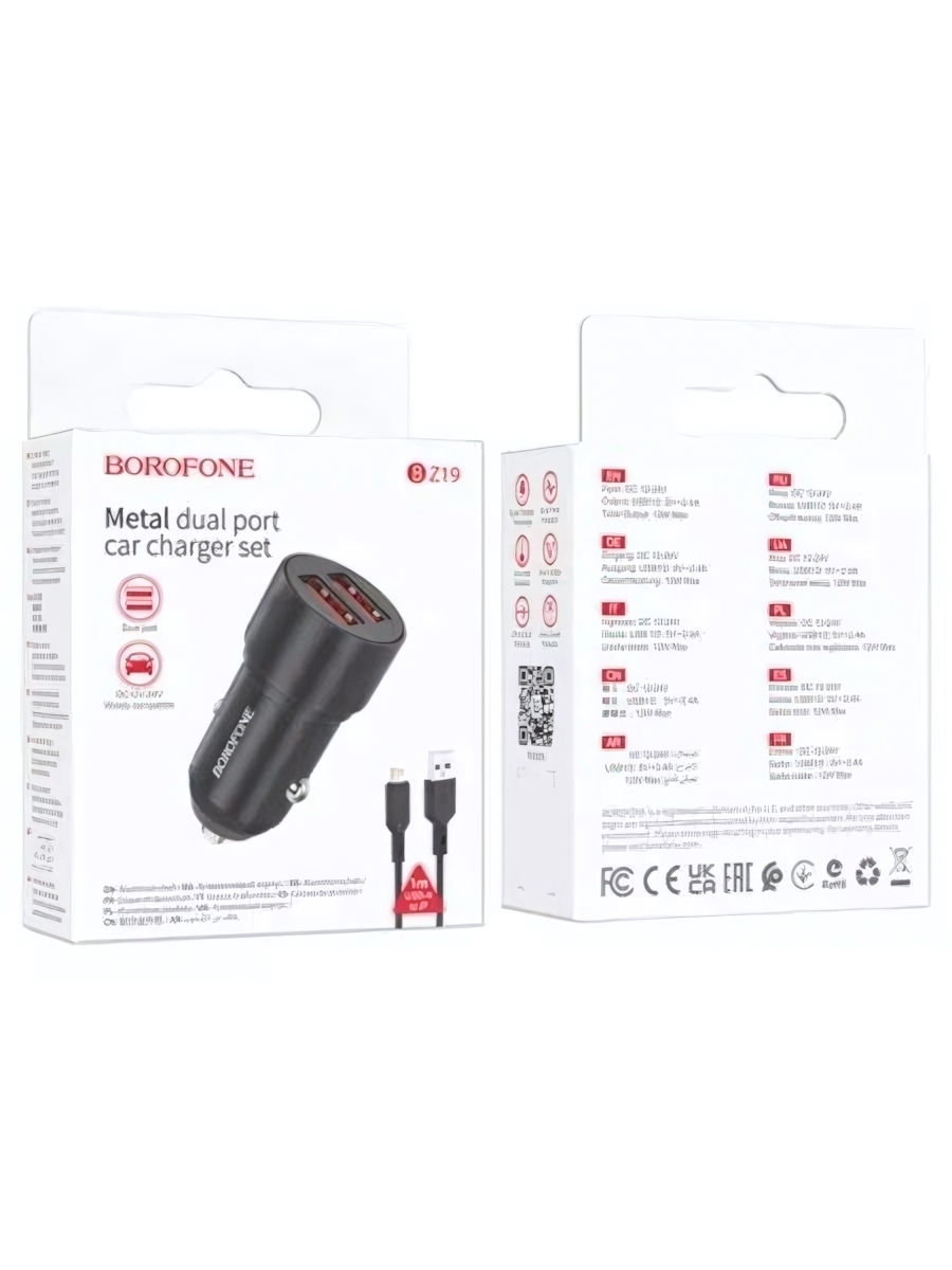 Автомобильное зарядное устройство Borofone BZ19 создано для тех, кто ценит удобство и скорость зарядки гаджетов в пути. Благодаря двум USB-портам общей мощностью 2.4А вы можете заряжать смартфон и планшет одновременно, не жертвуя временем и комфортом.