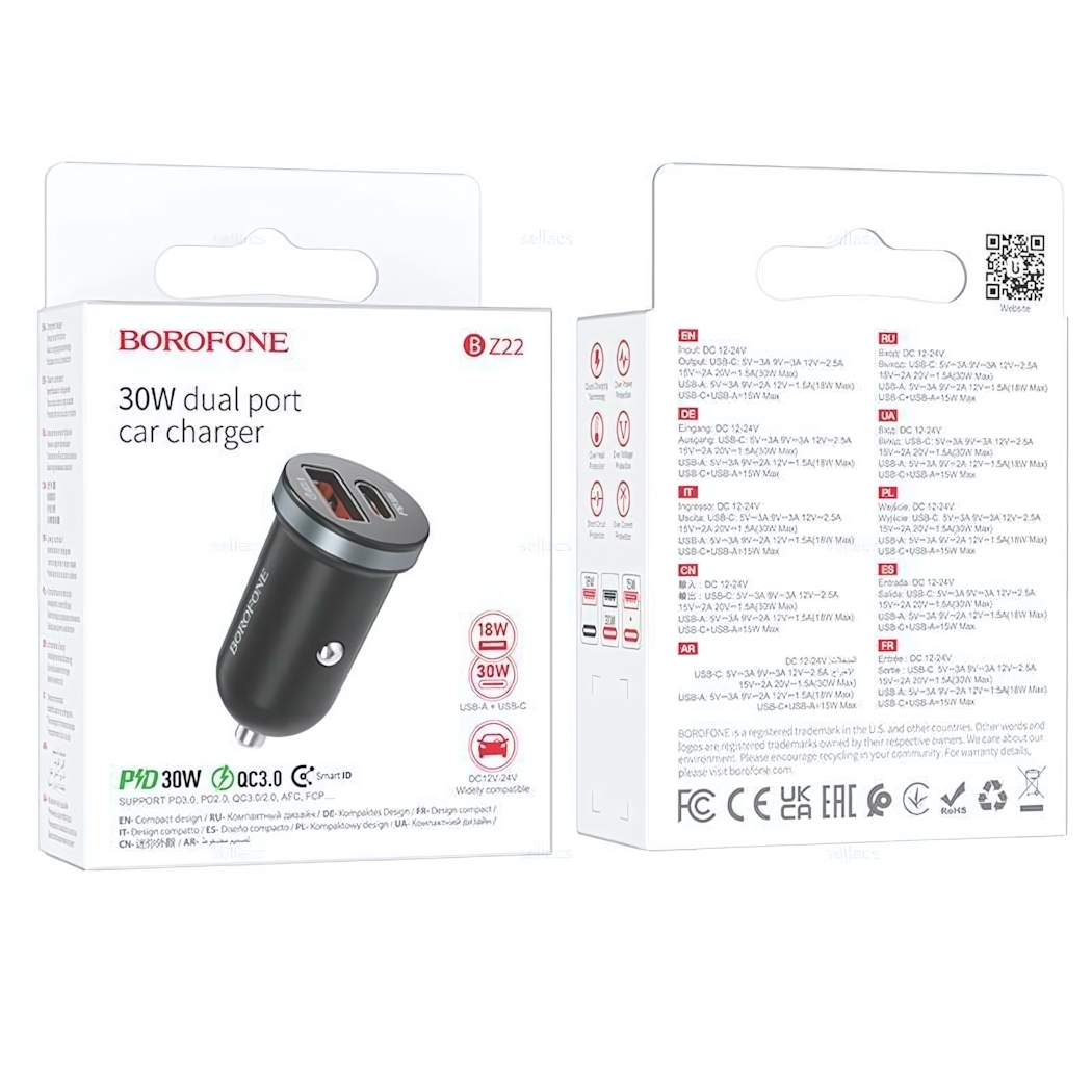 Забудьте о разряженных гаджетах в пути. Автомобильное зарядное устройство Borofone BZ22 с мощностью 30W обеспечивает быструю зарядку сразу двух устройств благодаря поддержке технологий Power Delivery (PD) и Quick Charge (QC) 3.0.
