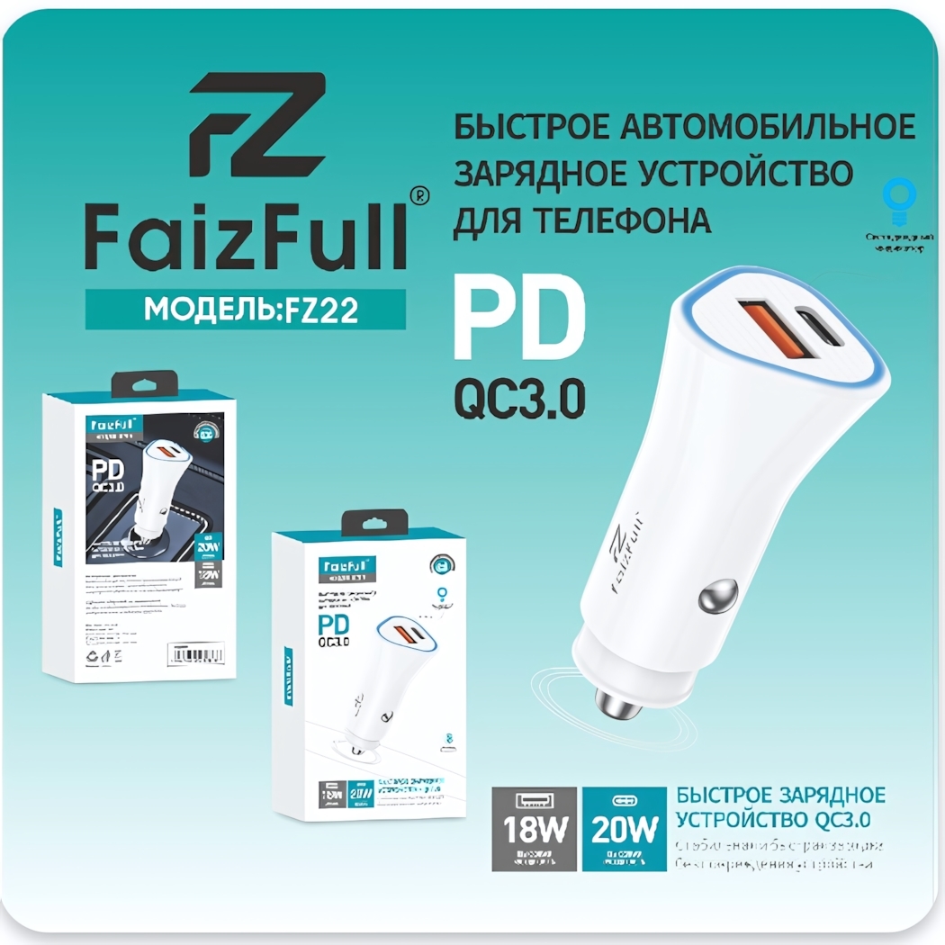 Представляем автомобильное зарядное устройство FaizFull FZ22 – ваш надежный помощник для подзарядки гаджетов в пути. Благодаря технологии Power Delivery (PD) на 20W и Quick Charge (QC) 3.0, вы сможете зарядить смартфон или планшет максимально быстро.