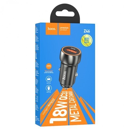 Зарядное устройство Hoco Z46 имеет входное напряжение 12-24V и выходное напряжение 18W, что делает его универсальным для использования в различных автомобилях. Упаковка устройства выполнена в ярком синем цвете и содержит всю необходимую информацию о совместимости с устройствами. Не упустите возможность сделать свою поездку более комфортной и продуктивной с помощью этого качественного зарядного устройства!