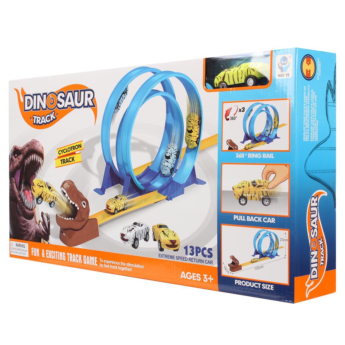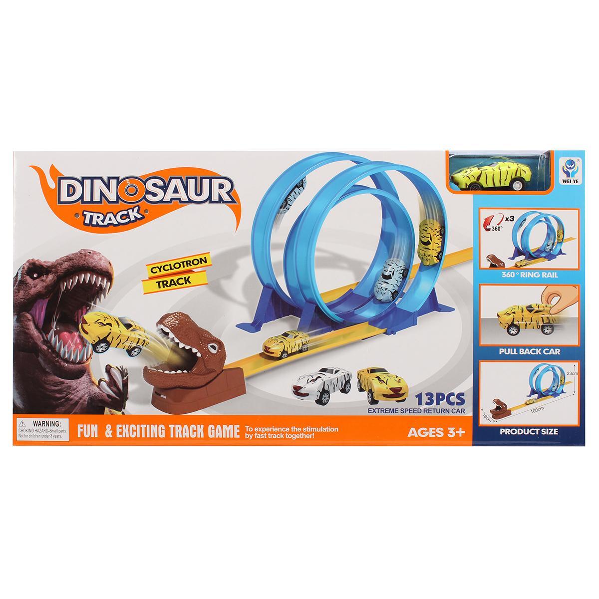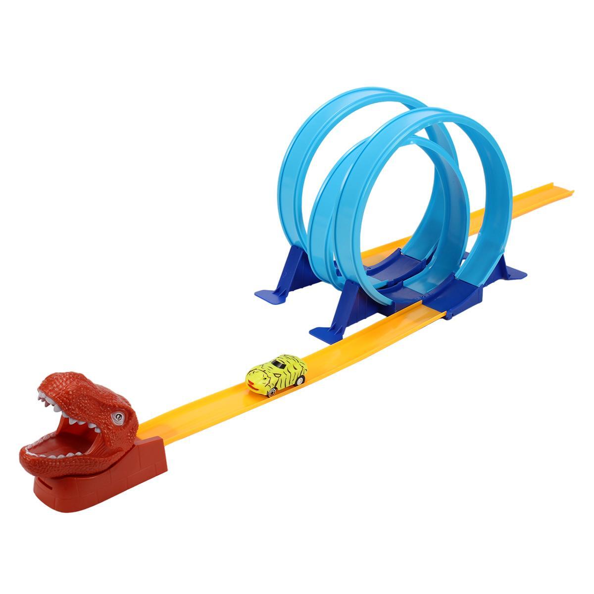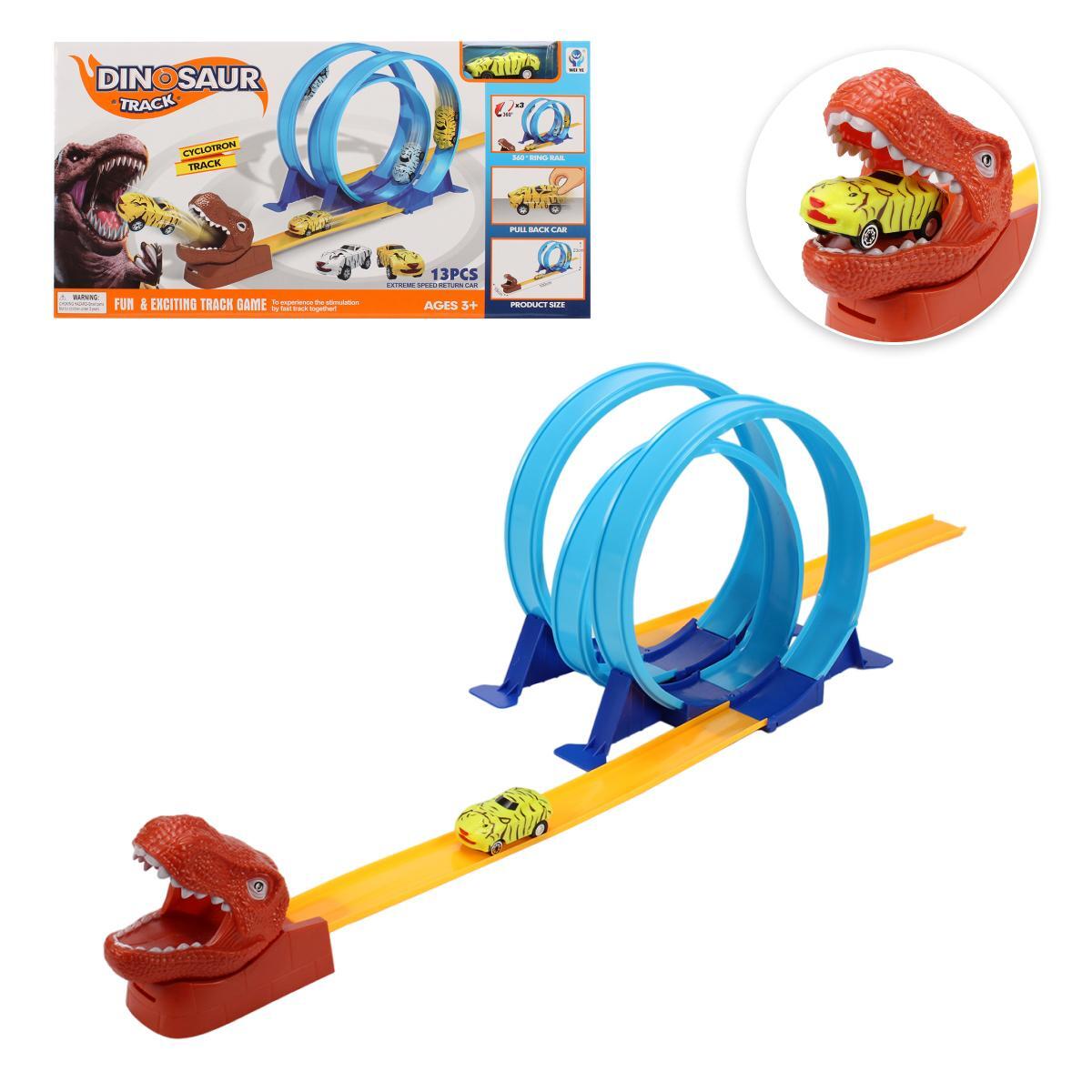 Яркий автотрек с динозавром для захватывающих гонок