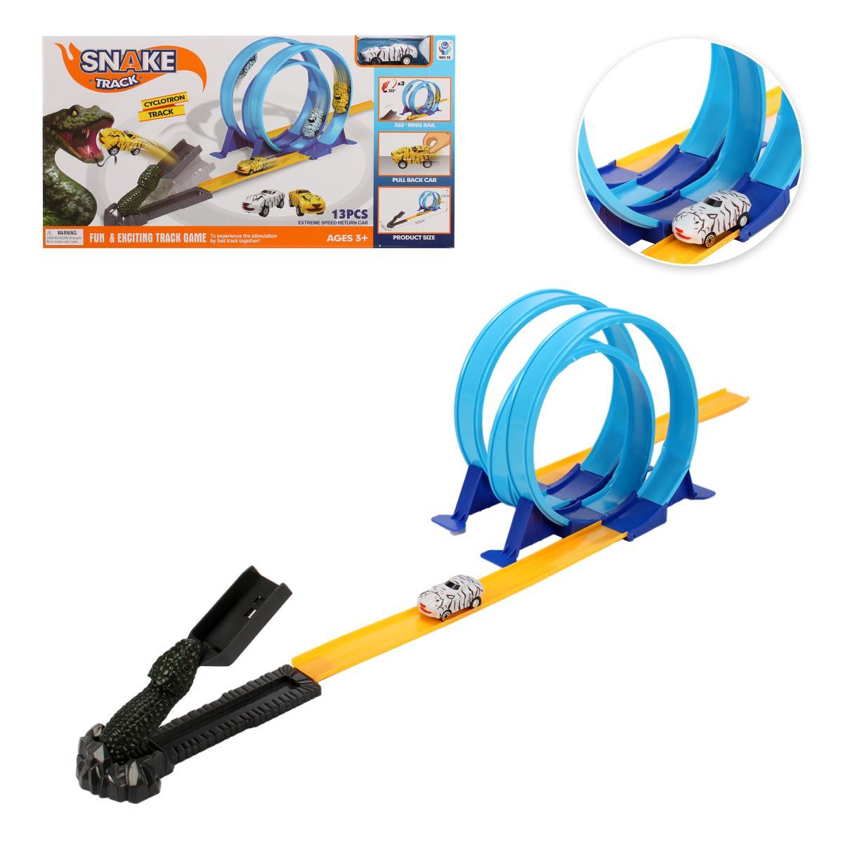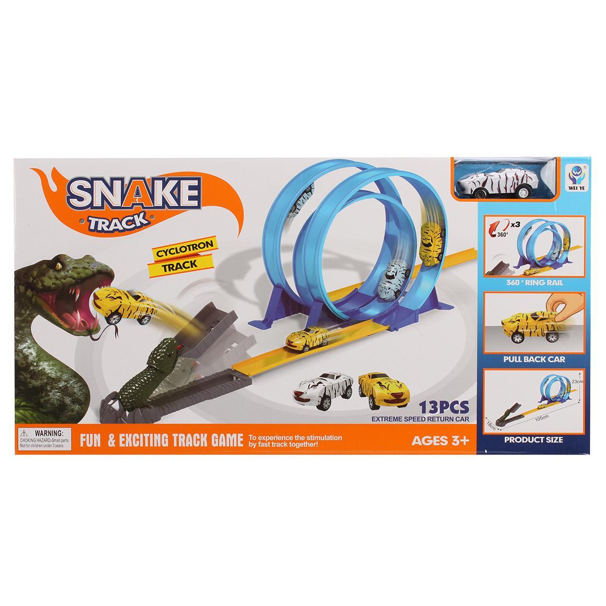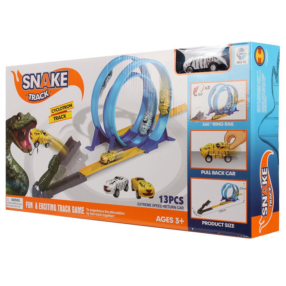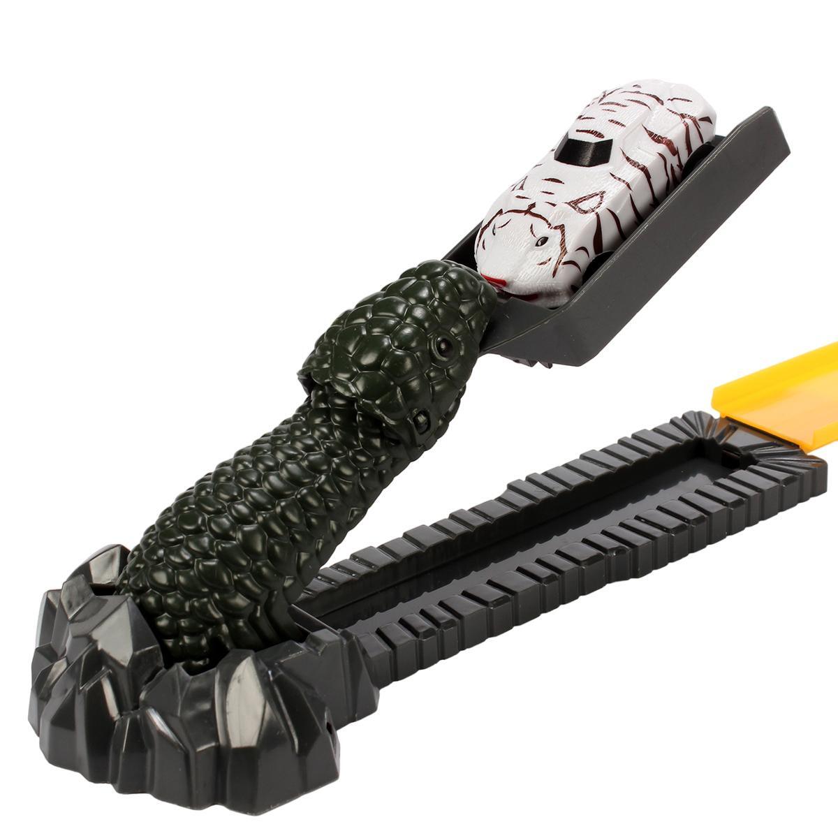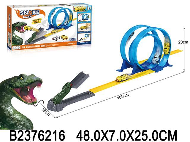 Этот яркий автотрек 'Snake Track' станет настоящим подарком для маленького любителя машинок и приключений. Благодаря уникальной конструкции с элементами в виде динозавра, игра становится еще более захватывающей.