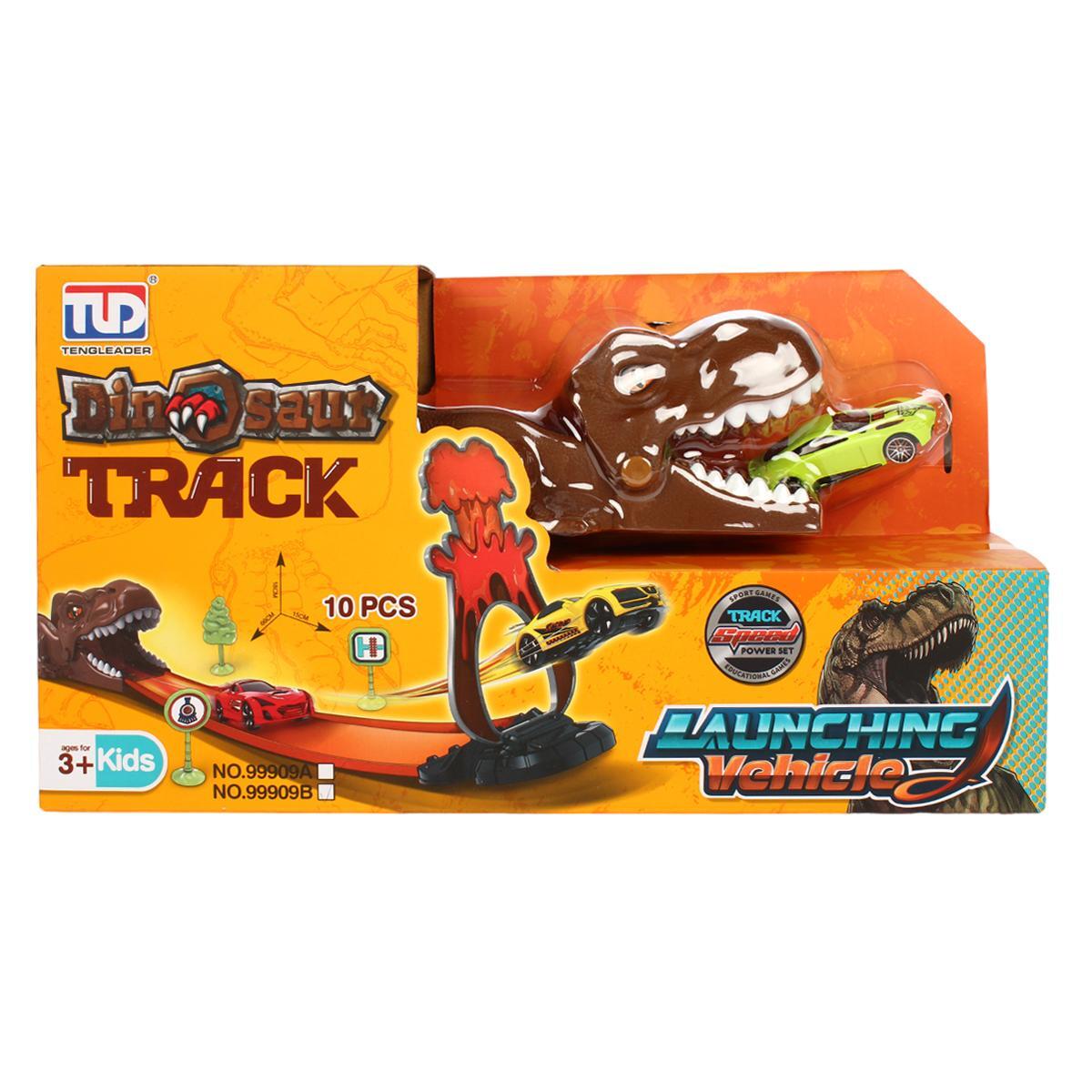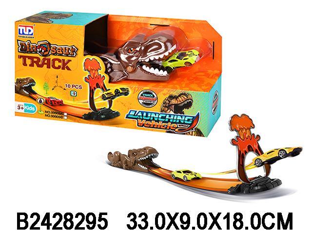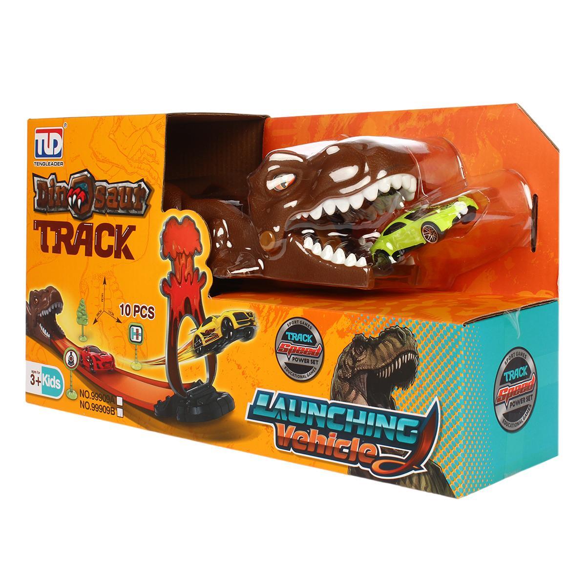 Автотрек динозавр, 10 деталей, запуск машинок, гоночная трасса для детей 3+, "Dinosaur Track", 33х9х18 см