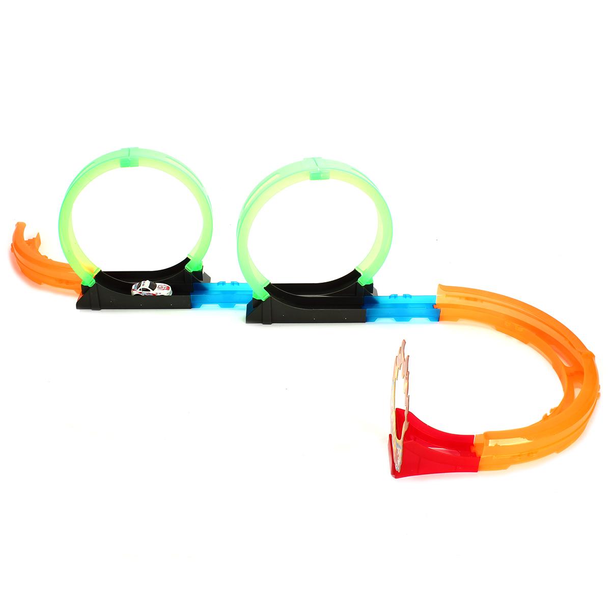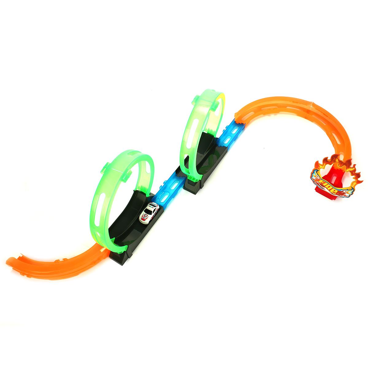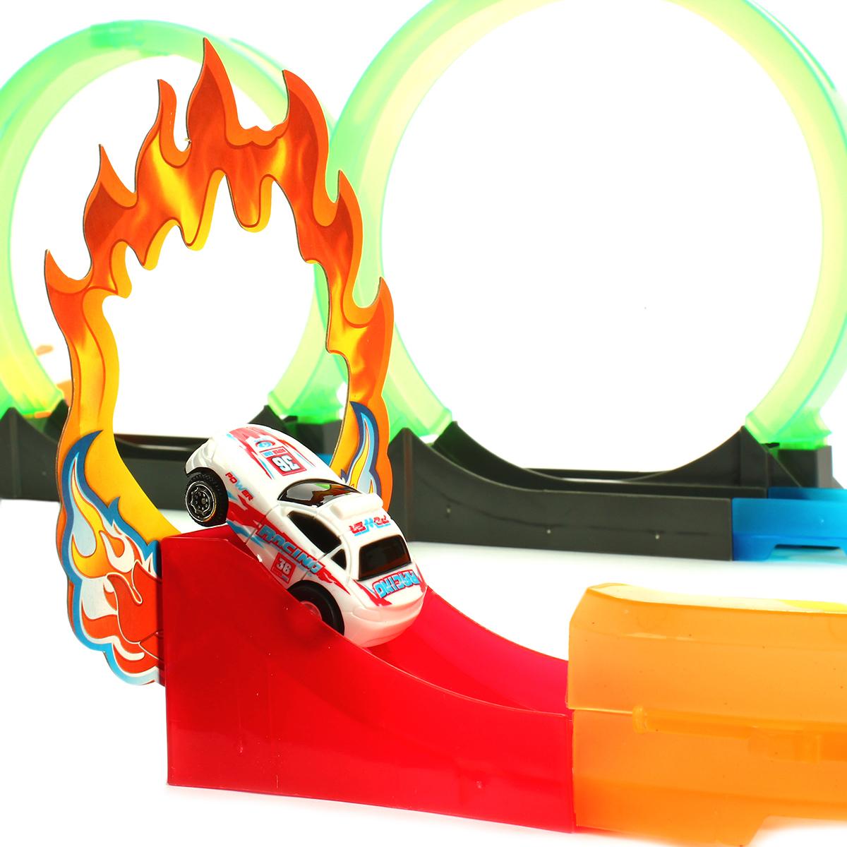 Практические детали: в комплект входит автомобиль, трасса из разноцветных элементов. В набор не входят элементы питания, что позволяет использовать его с любыми стандартными батарейками или без них для мехатронных элементов. Этот набор станет отличным подарком для юных гонщиков и любителей активных игр.