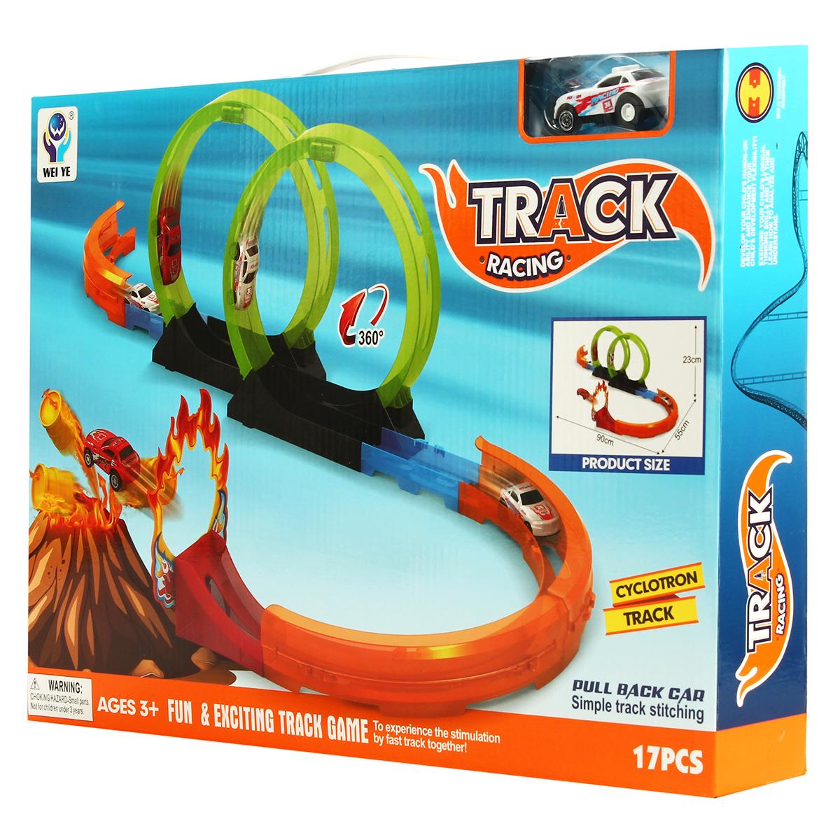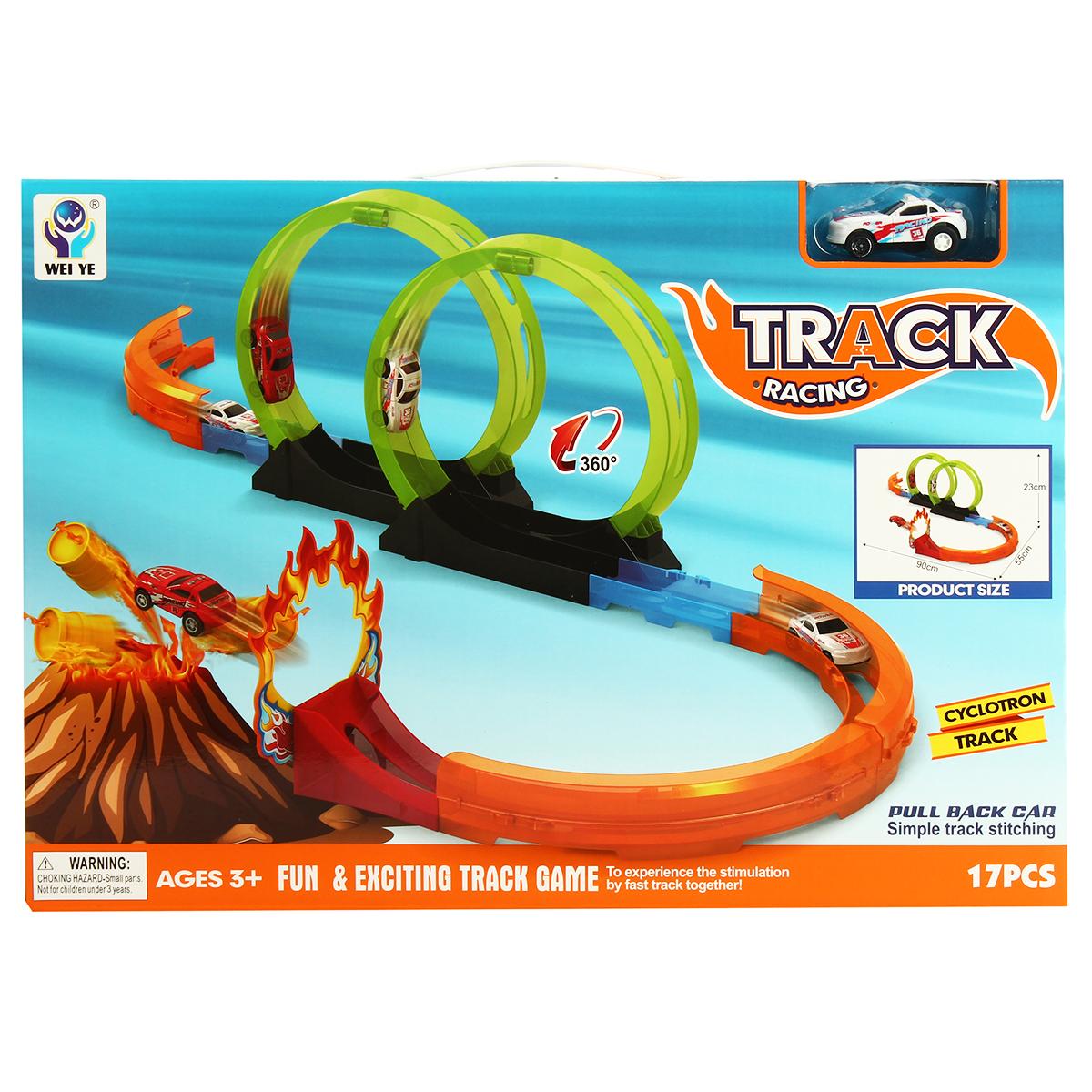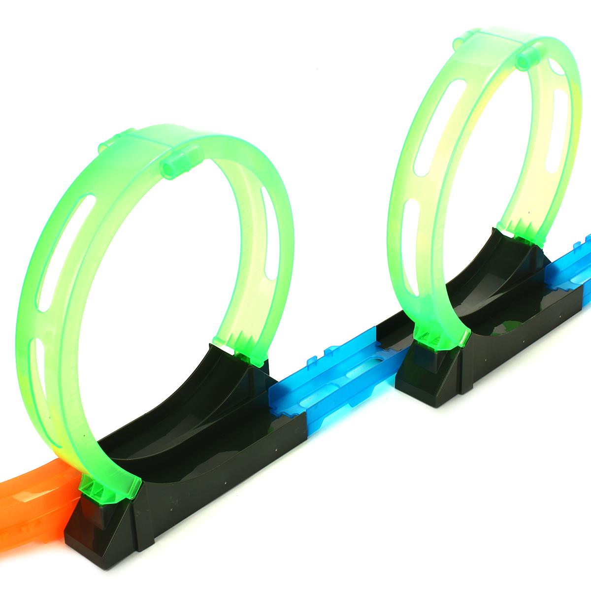 Практические детали: в комплект входит автомобиль, трасса из разноцветных элементов. В набор не входят элементы питания, что позволяет использовать его с любыми стандартными батарейками или без них для мехатронных элементов. Этот набор станет отличным подарком для юных гонщиков и любителей активных игр.