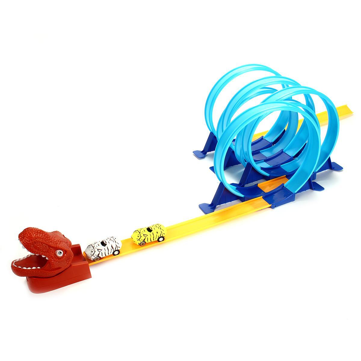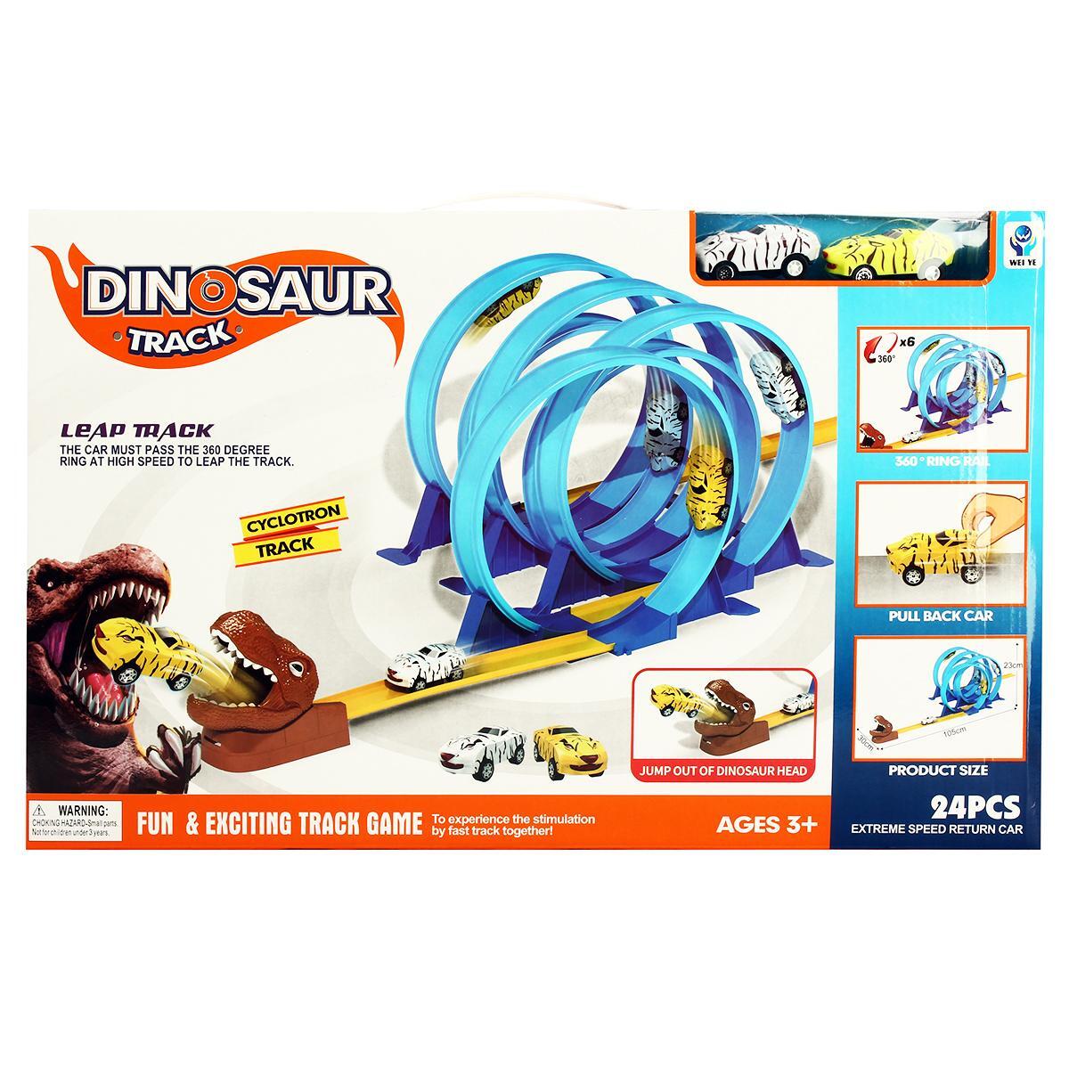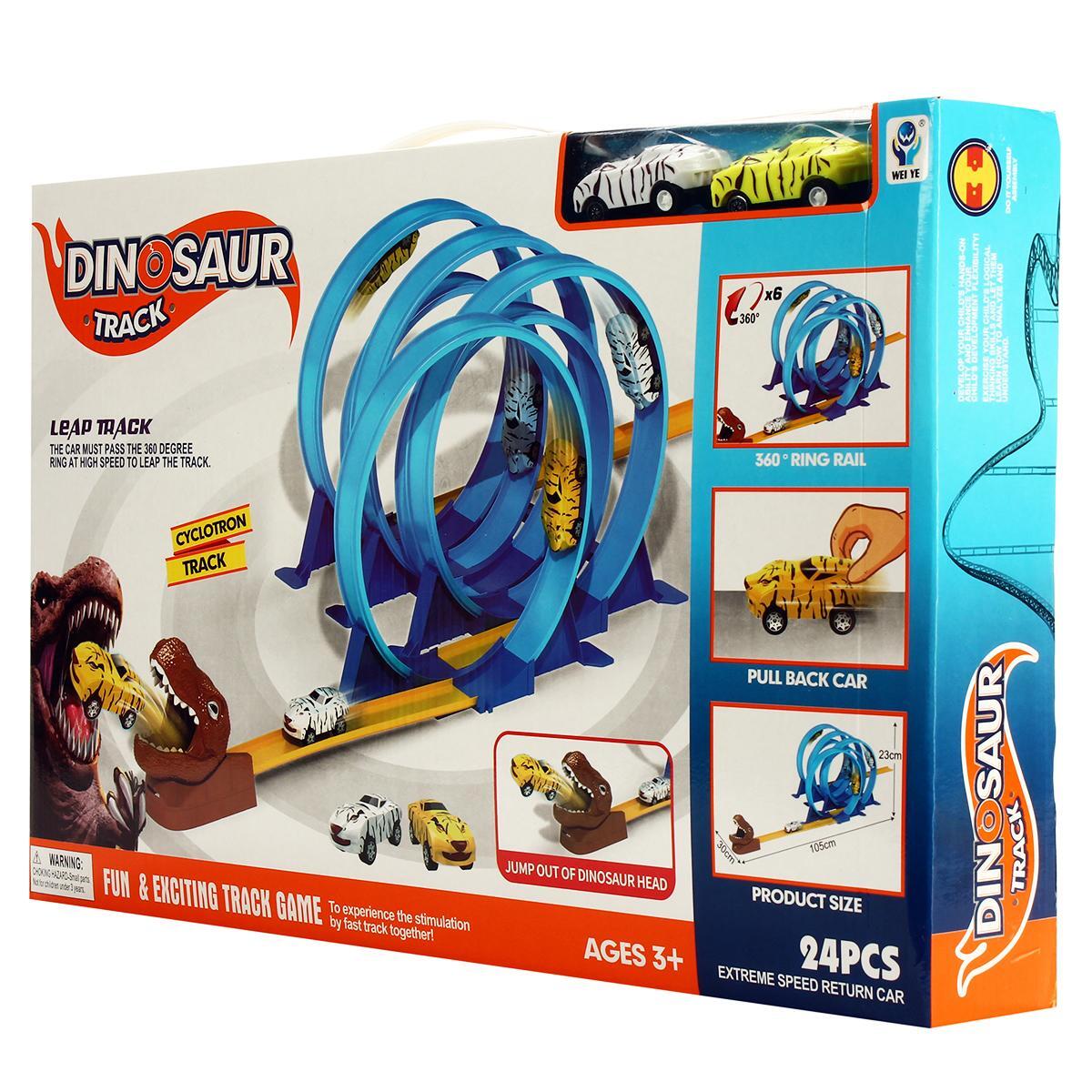 Погрузитесь в мир захватывающих гонок с автотреком, в центре которого впечатляющая голова динозавра. Этот игровой набор создан для веселых, активных и креативных игр детей от 3 лет. Автомобили устремляются по яркому треку, преодолевают синие 360-градусные кольца и вырываются из пасти динозавра — каждая гонка становится новым приключением!