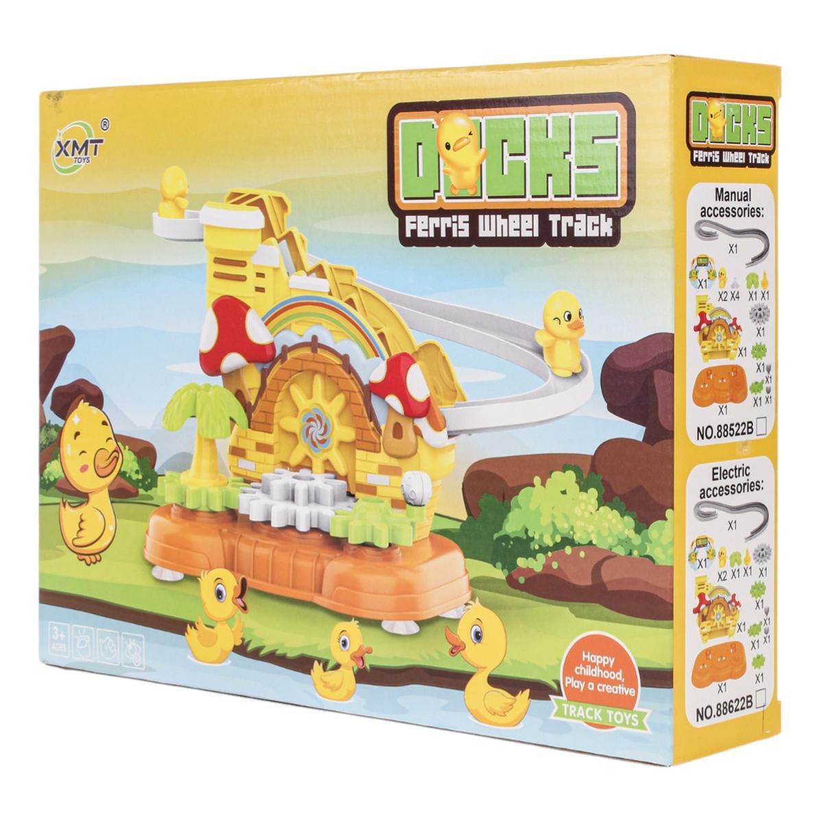 Размер трека (27x5.5x20см) позволяет разместить его даже в небольшой комнате. Детализированный дизайн с декоративными элементами создает атмосферу настоящих гонок. Подходит как для самостоятельной игры, так и для веселого времяпрепровождения с друзьями.