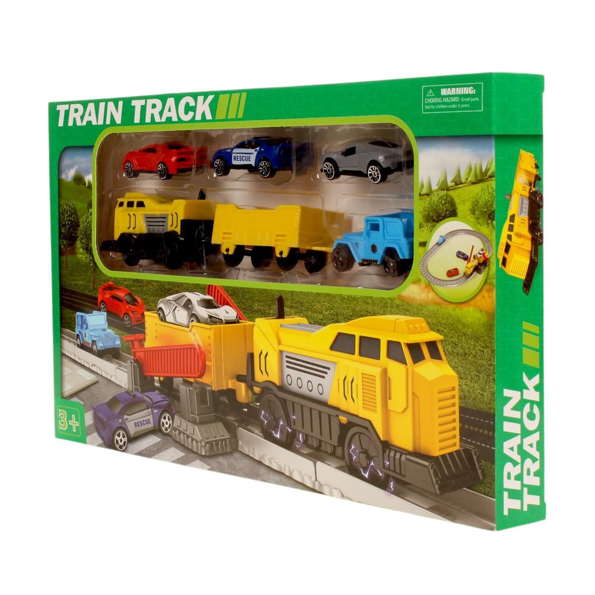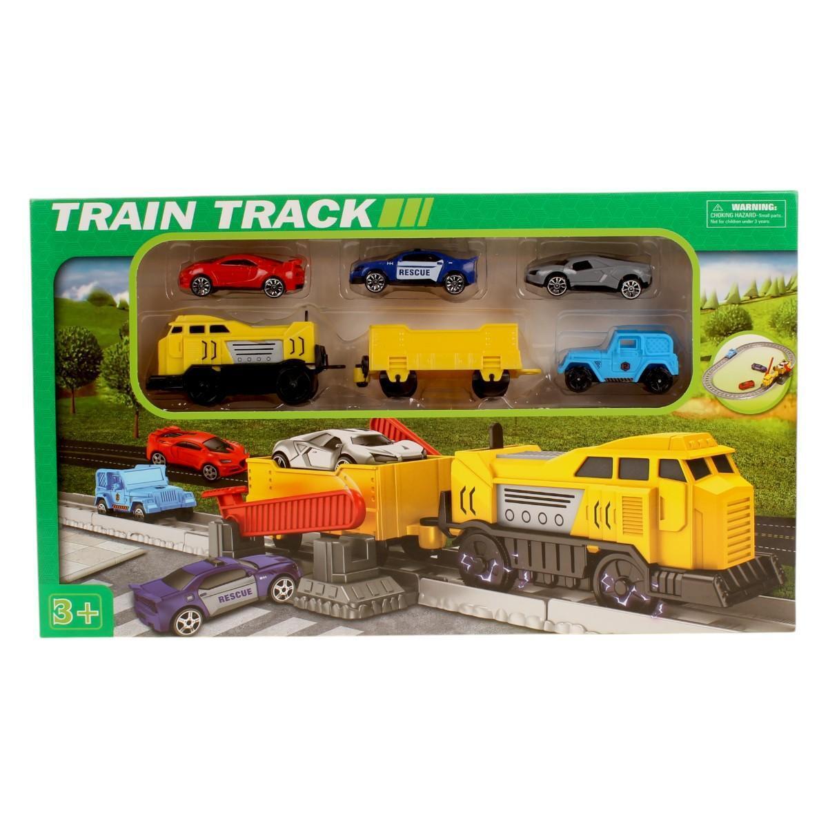 Автотрек игровой, железная дорога с поездом и машинками, 6 предметов, пластик