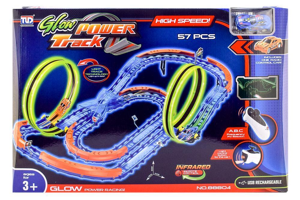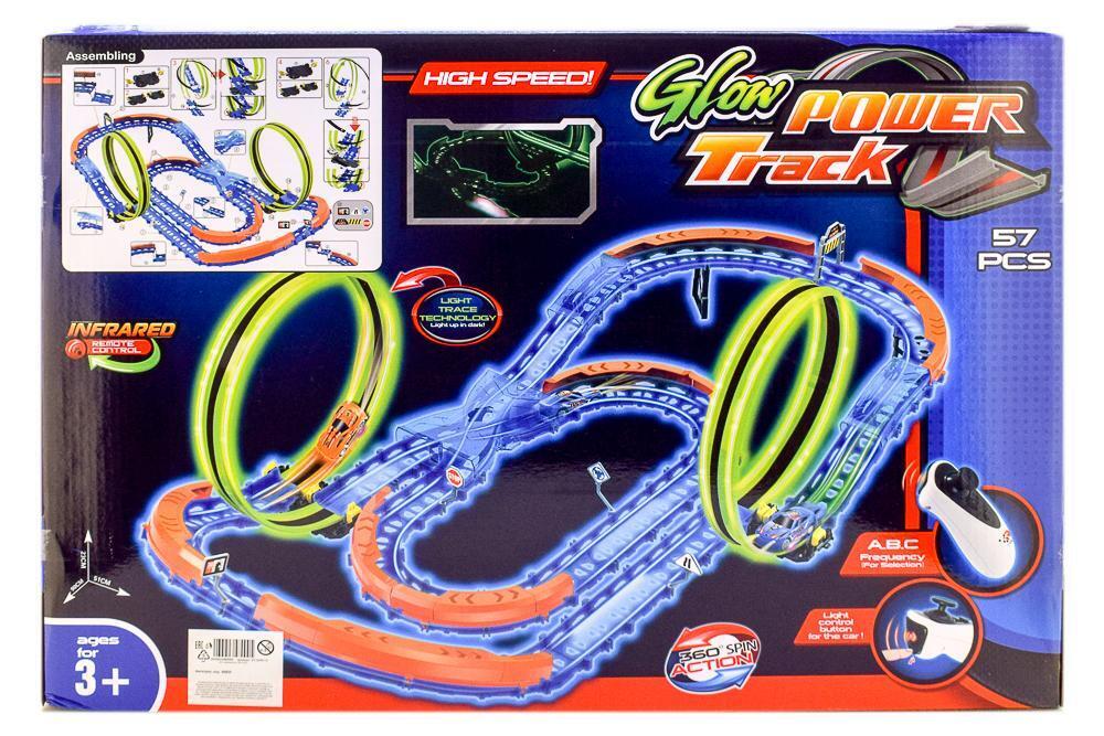 Автотрек Glow Power Track, 57 деталей, световая подсветка, от 3 лет