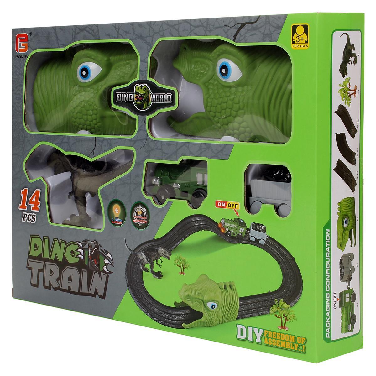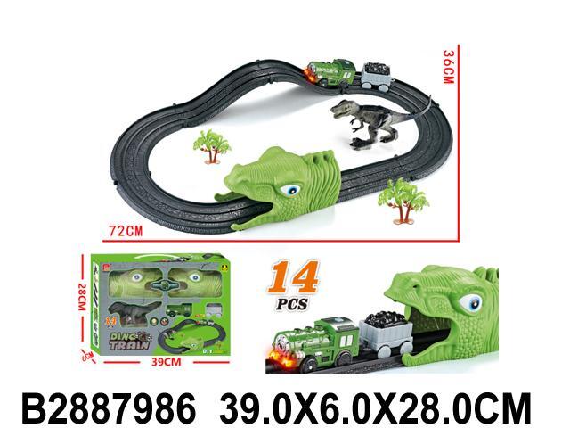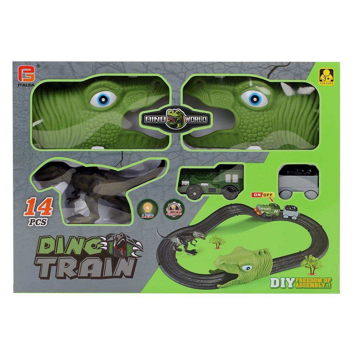 Железная дорога «Dino Train» с LED-подсветкой, 14 деталей, для развития моторики, пластик, 72 см