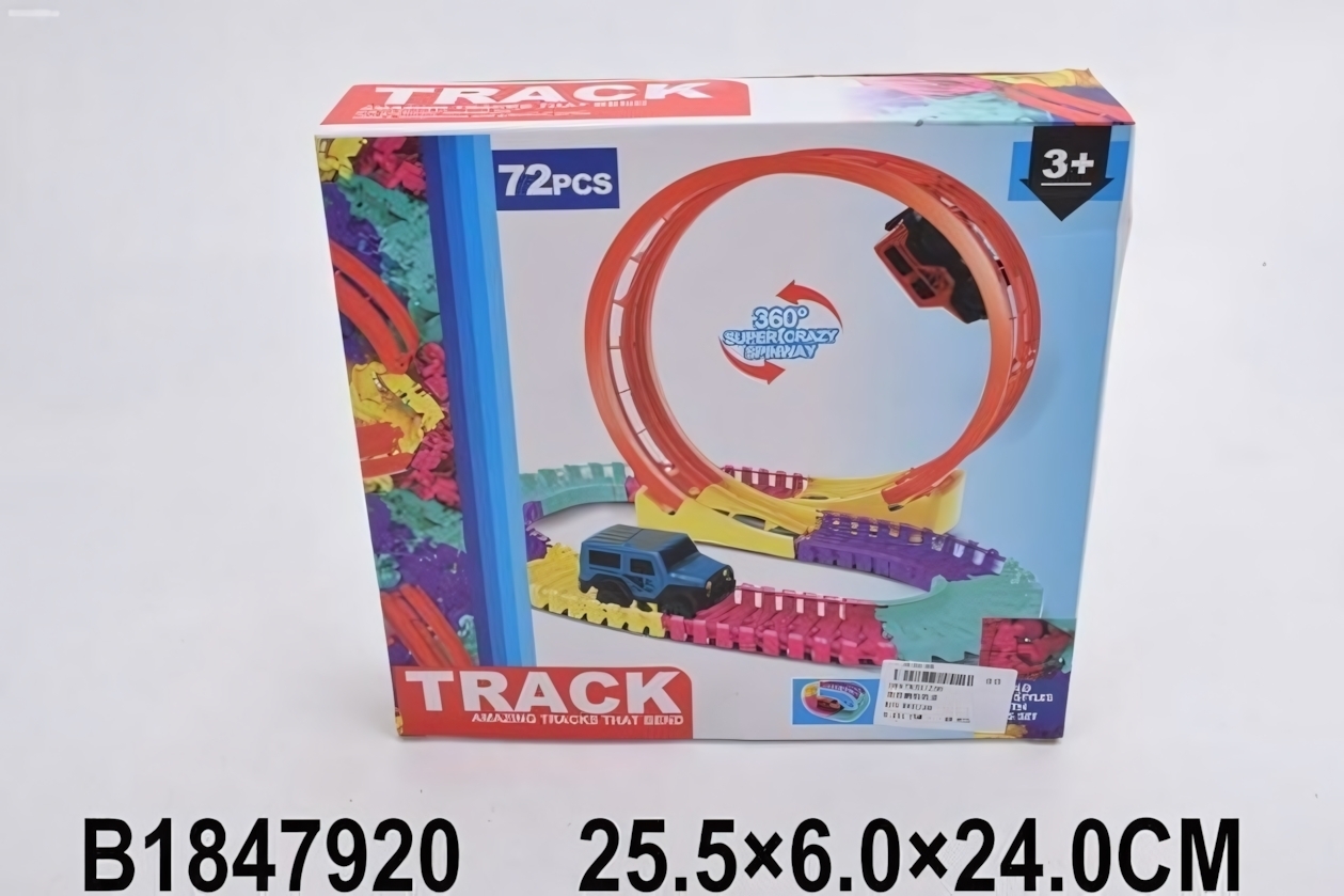 Автотрек с петлей 360°, 72 детали, для сборки трека, 25,5х24 см, возраст 3+