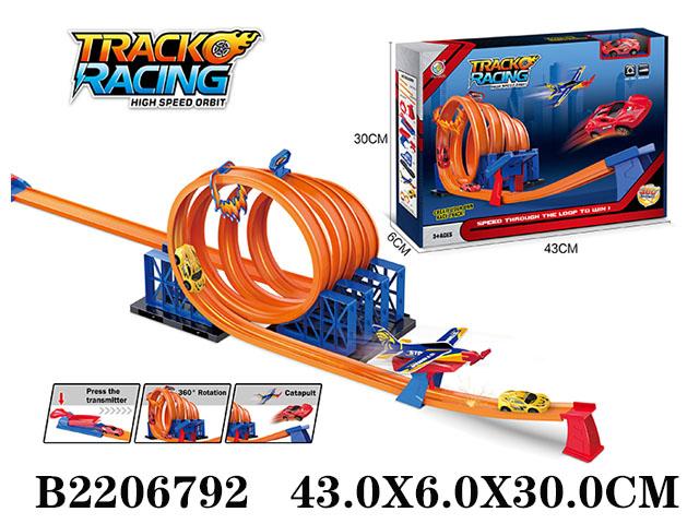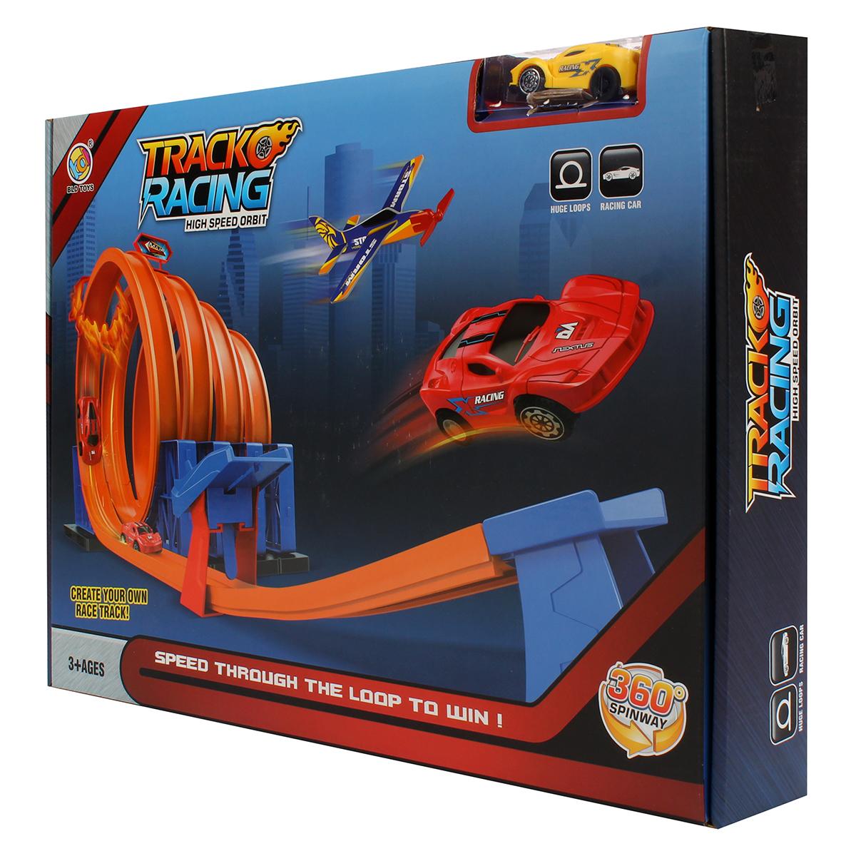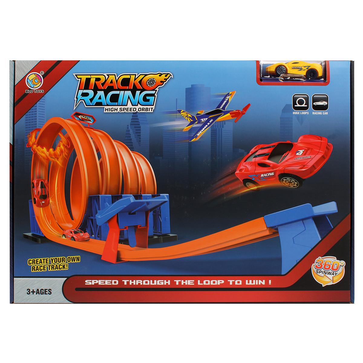 Размеры упаковки составляют 43 см в длину, 6 см в ширину и 30 см в высоту. Автотрек выполнен в ярких оранжевых и синих цветах, что делает его привлекательным для детей. В комплект входят три машинки, которые обеспечивают разнообразие в игре. Этот автотрек станет отличным подарком для любого маленького гонщика!