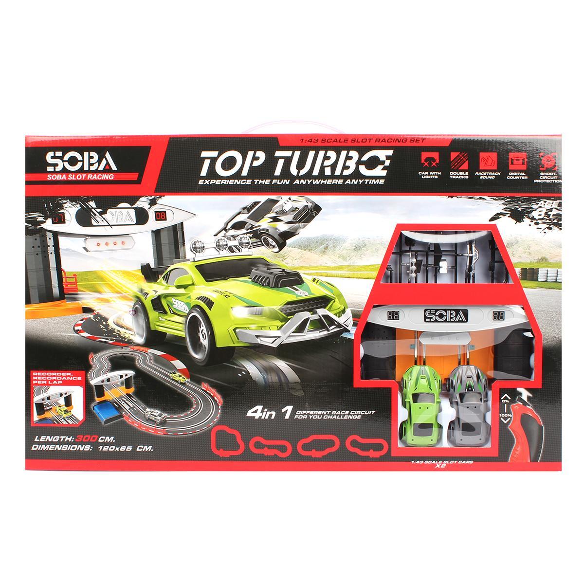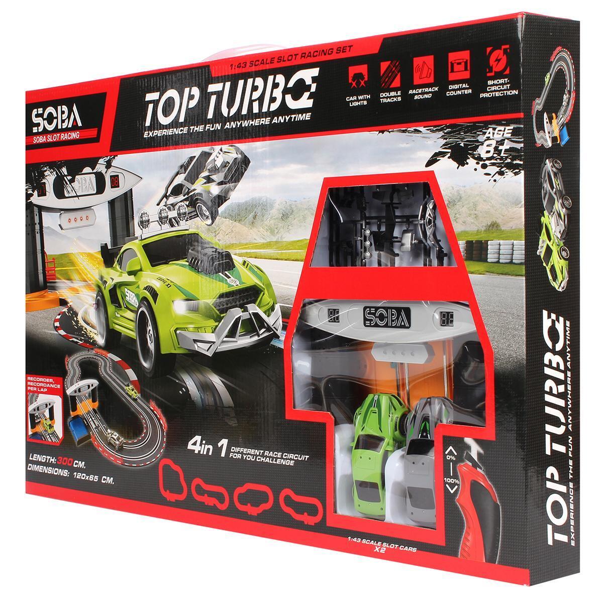 Автодром «TOP TURBO» с 2 машинками, светом, цифровым счетчиком, 300 см трасса, 4 конфигурации, пластик