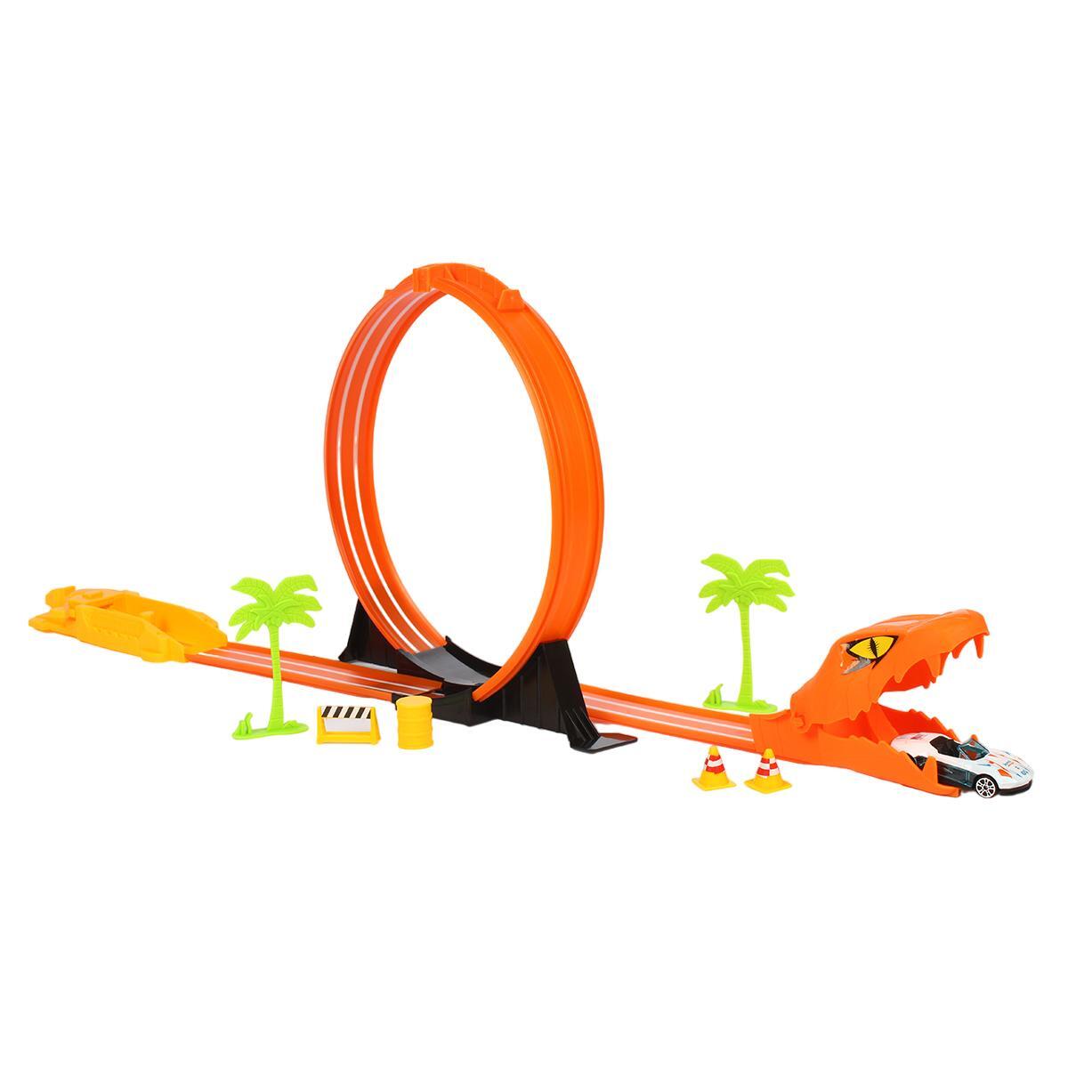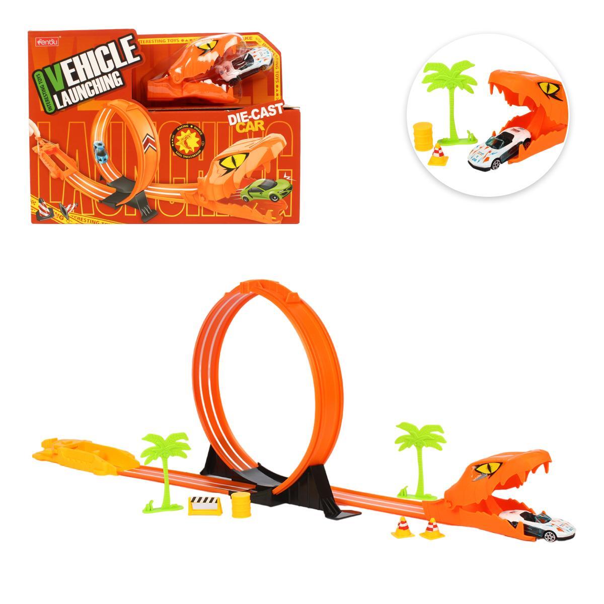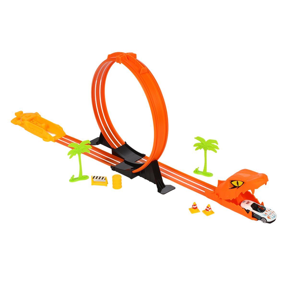 Игровой набор автотрек «Змея» с петлей, 2 машинками, декором, пластик, оранжевый, 33 см