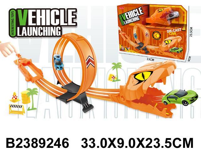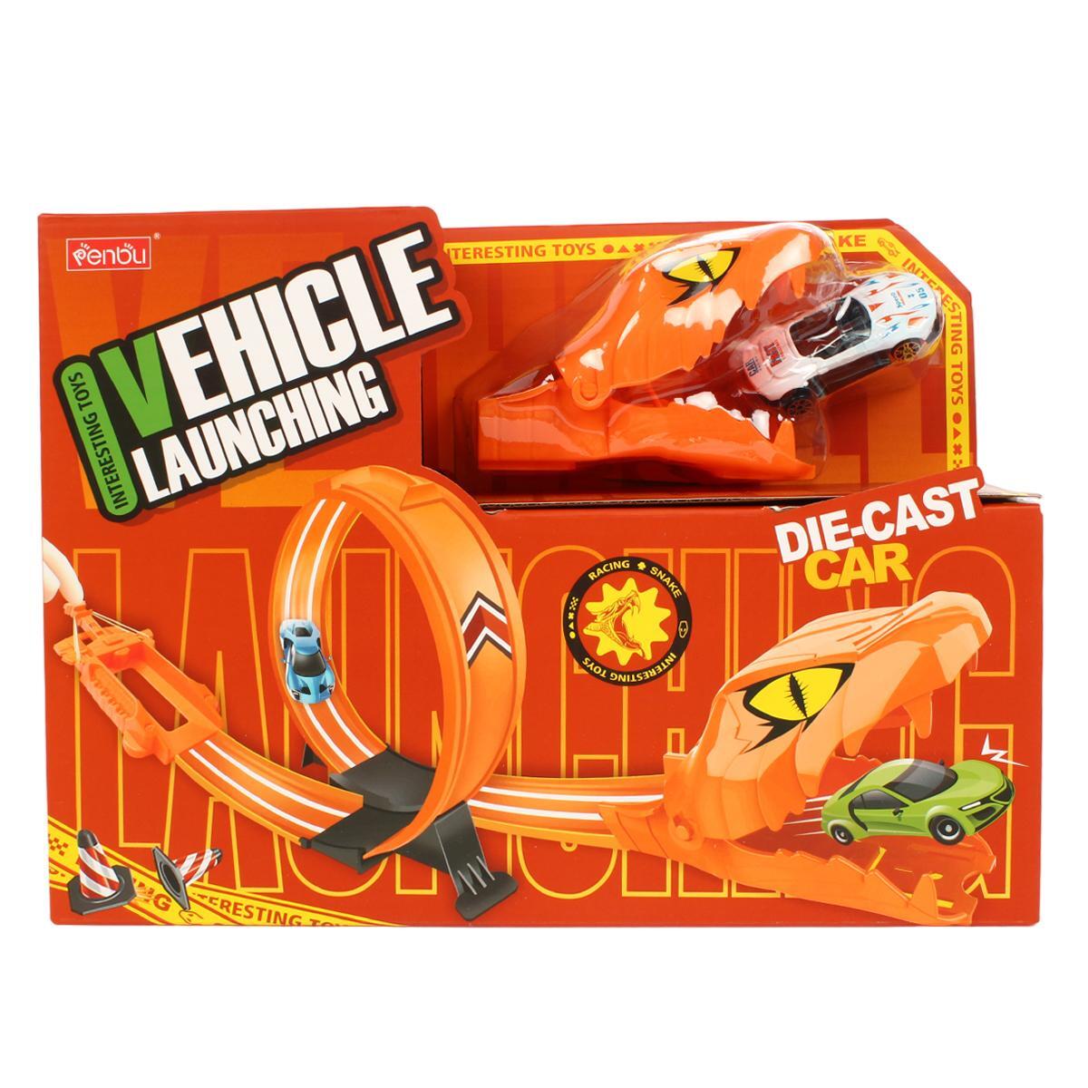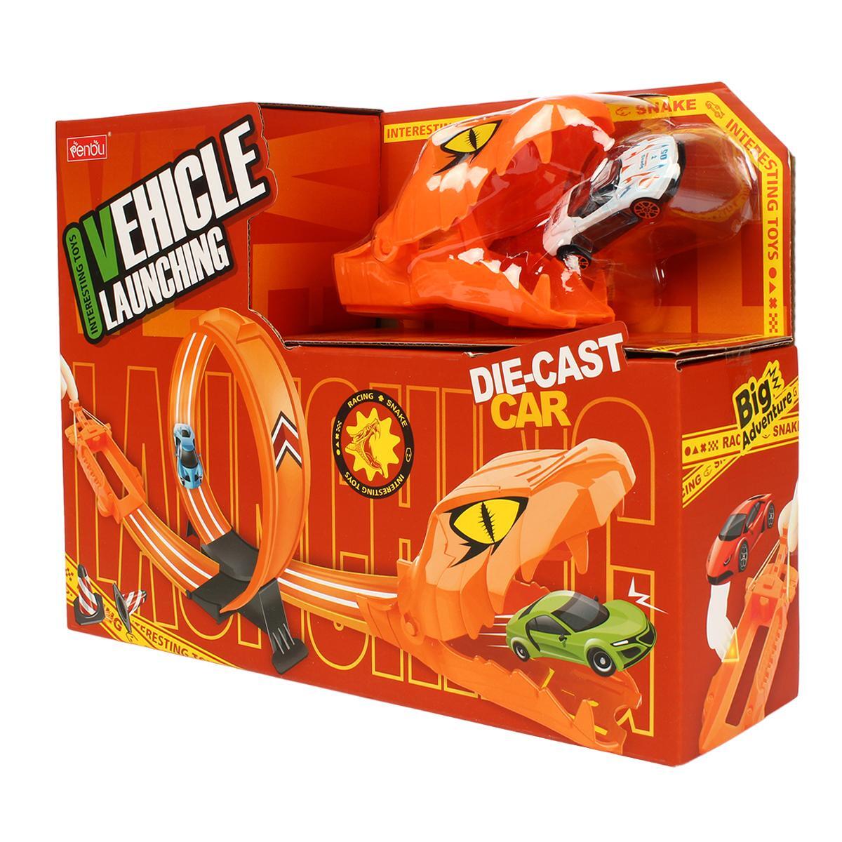 Игровой набор автотрек «Змея» с петлей, 2 машинками, декором, пластик, оранжевый, 33 см