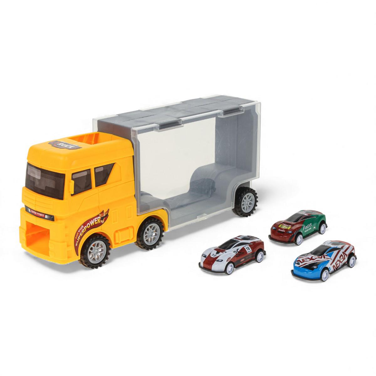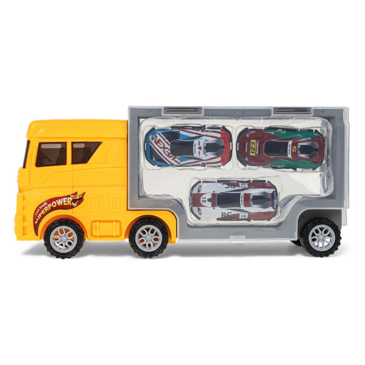 Что внутри: 1 жёлтый автовоз-перевозчик и 4 инерционные машинки. Купите один товар — получите готовый набор для игры и подарка без лишних покупок.