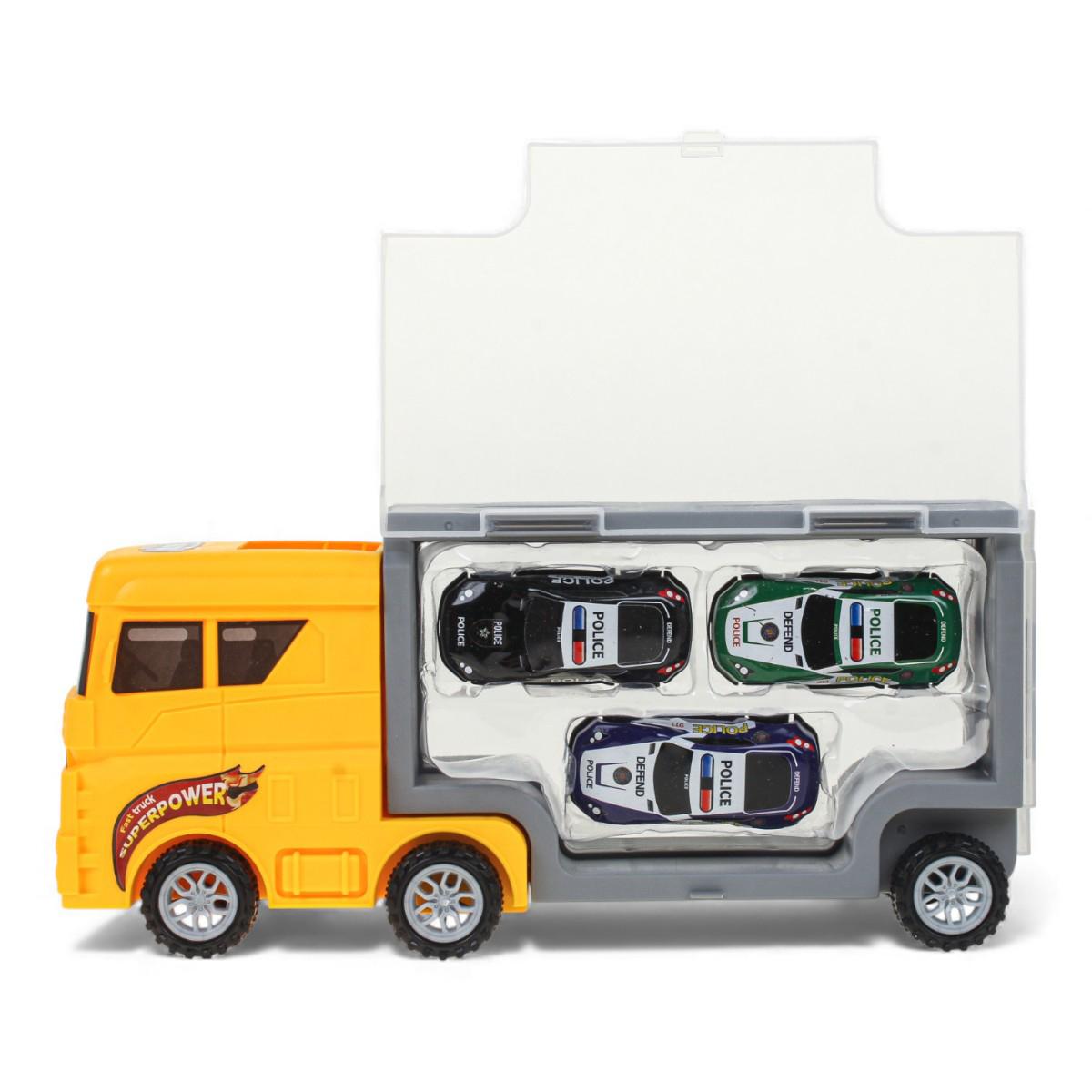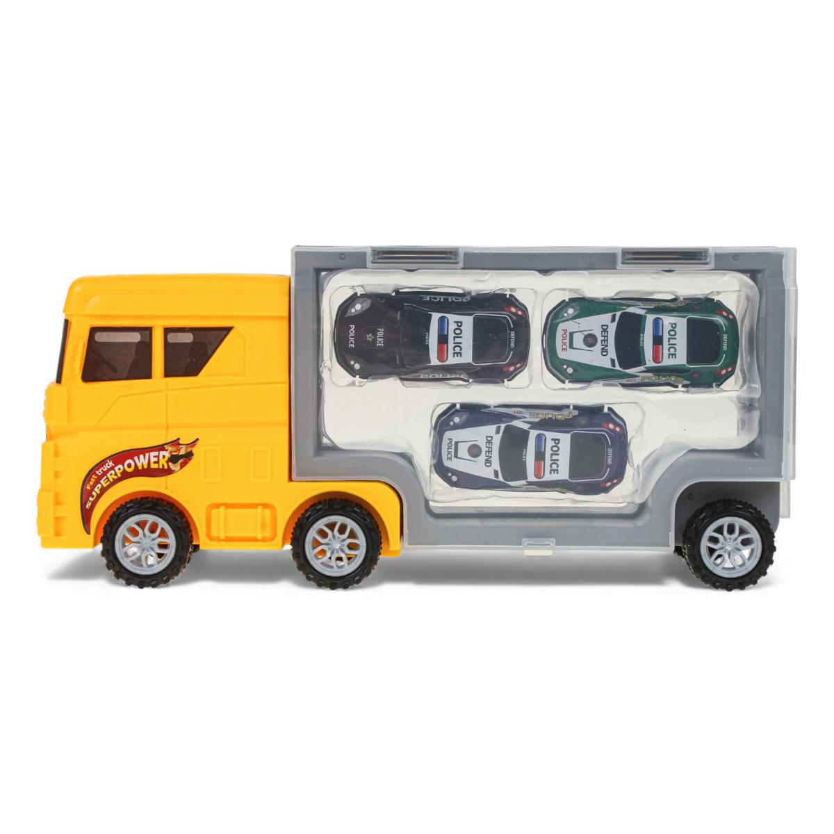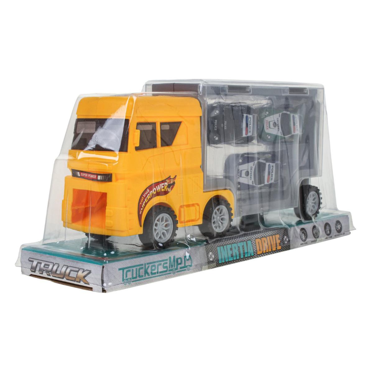 Игрушечный автовоз с 3 машинками, инерционный, пластик/металл, размер упаковки 32*9*14 см, для детей от 3 лет