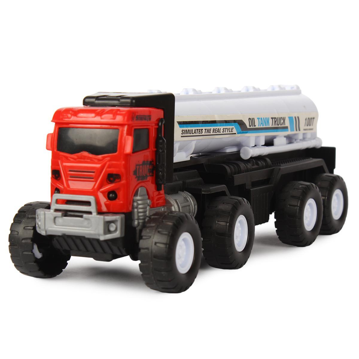 Просто откатите грузовик назад и отпустите — инерционный механизм приведет его в движение! Идеально подходит для сюжетно-ролевых игр: перевозка грузов, строительные миссии или создание автопарка.