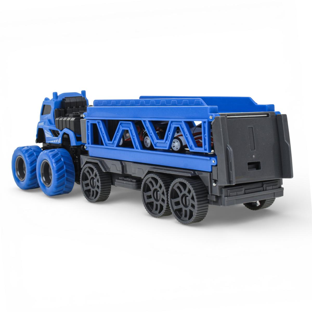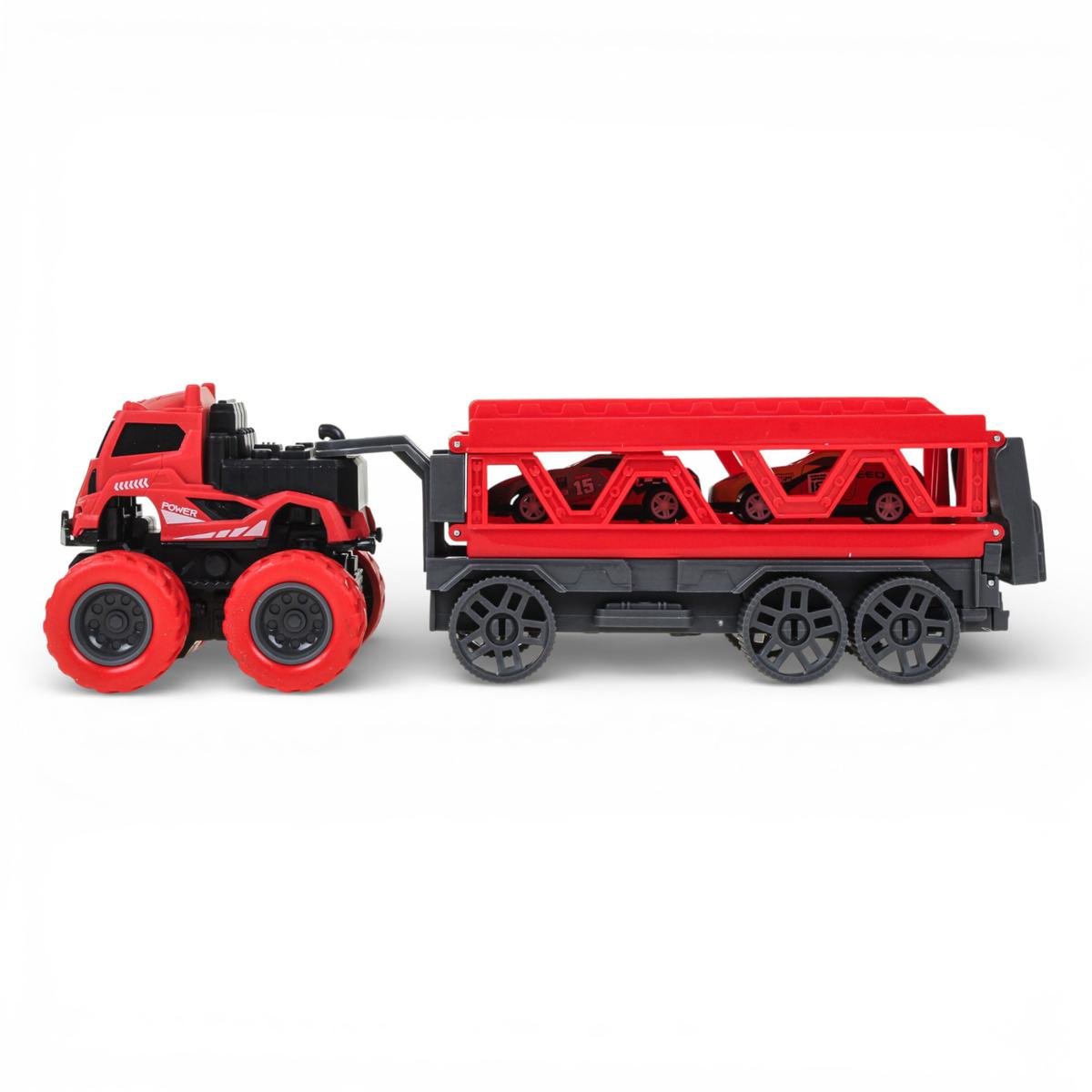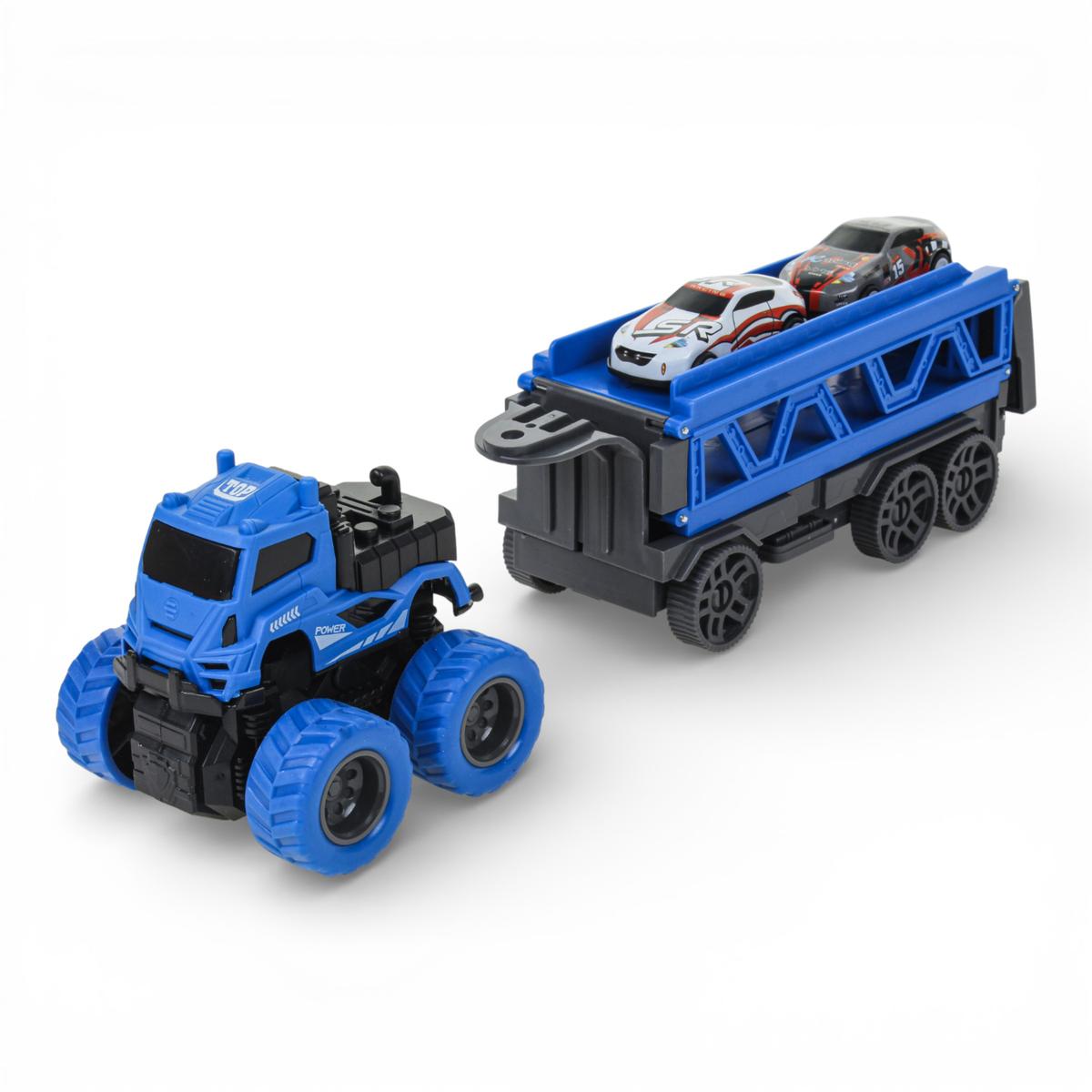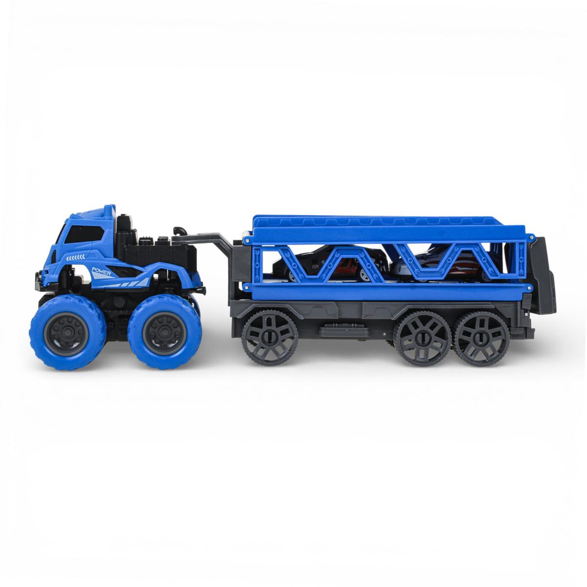 Инерционный автовоз с двумя машинками — это не просто транспортёр, а полноценный игровой центр для маленького любителя скорости. Ребёнок может перевозить машинки, устраивать заезды и запускать их по длинной трассе, которая раскладывается прямо из прицепа. Такая игрушка надолго увлекает и дарит динамичную, активную игру.