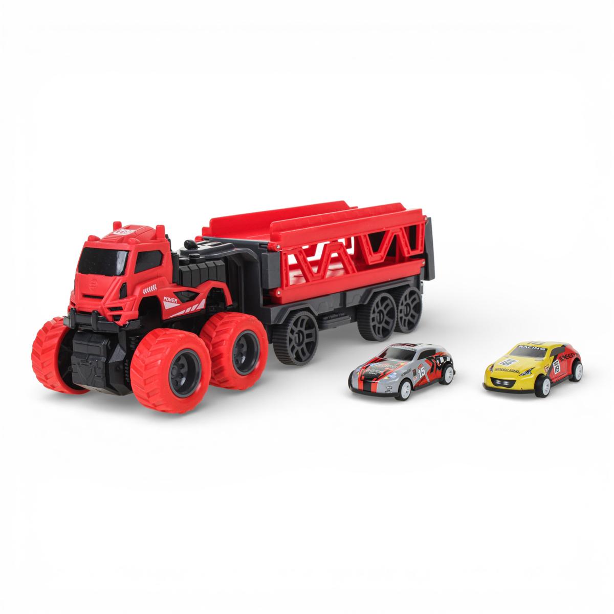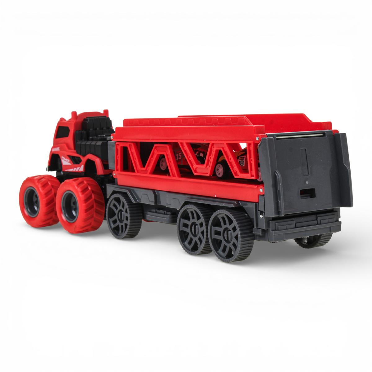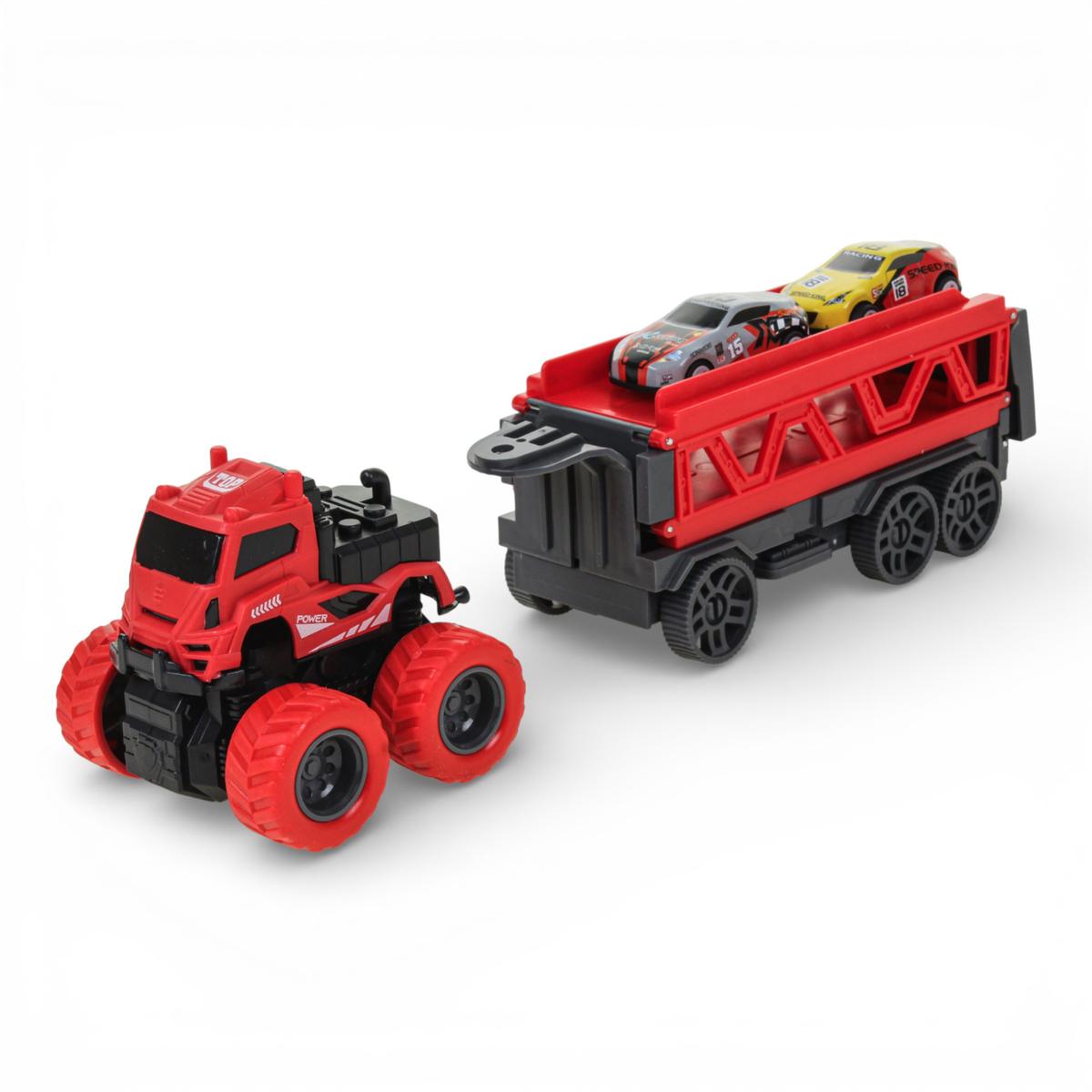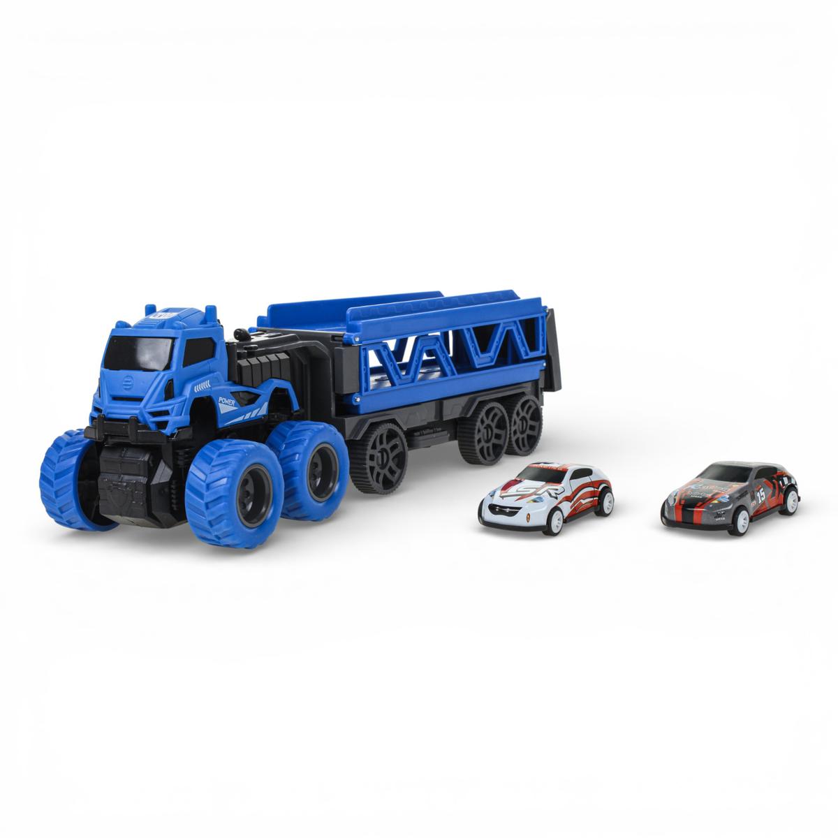 Инерционный автовоз с двумя машинками — это не просто транспортёр, а полноценный игровой центр для маленького любителя скорости. Ребёнок может перевозить машинки, устраивать заезды и запускать их по длинной трассе, которая раскладывается прямо из прицепа. Такая игрушка надолго увлекает и дарит динамичную, активную игру.