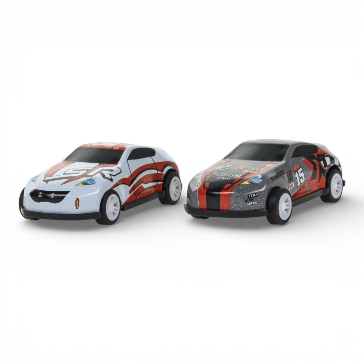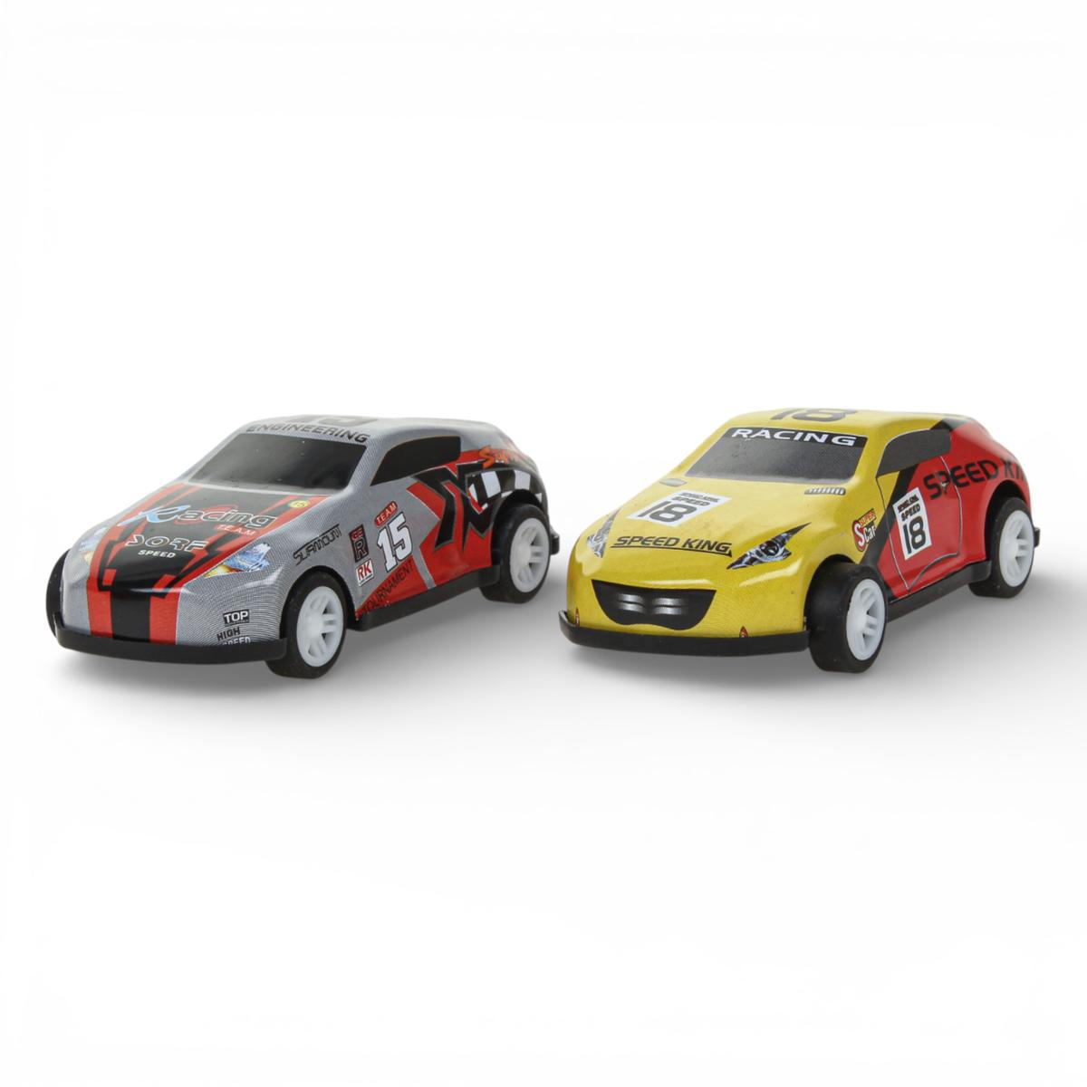- В комплект входят 2 маленькие машинки для захватывающих заездов.