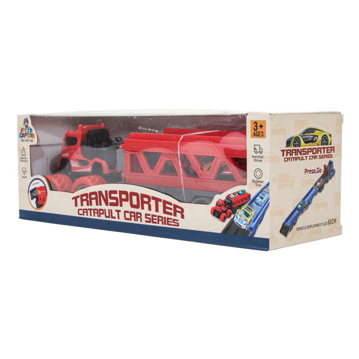 Игрушка сочетает в себе сразу несколько сценариев игры: перевозка техники, соревнования на скорость, запуск с катапультой и сюжетные истории. Это помогает развивать воображение, координацию движений и мелкую моторику. Прочный пластиковый корпус рассчитан на активную игру дома.