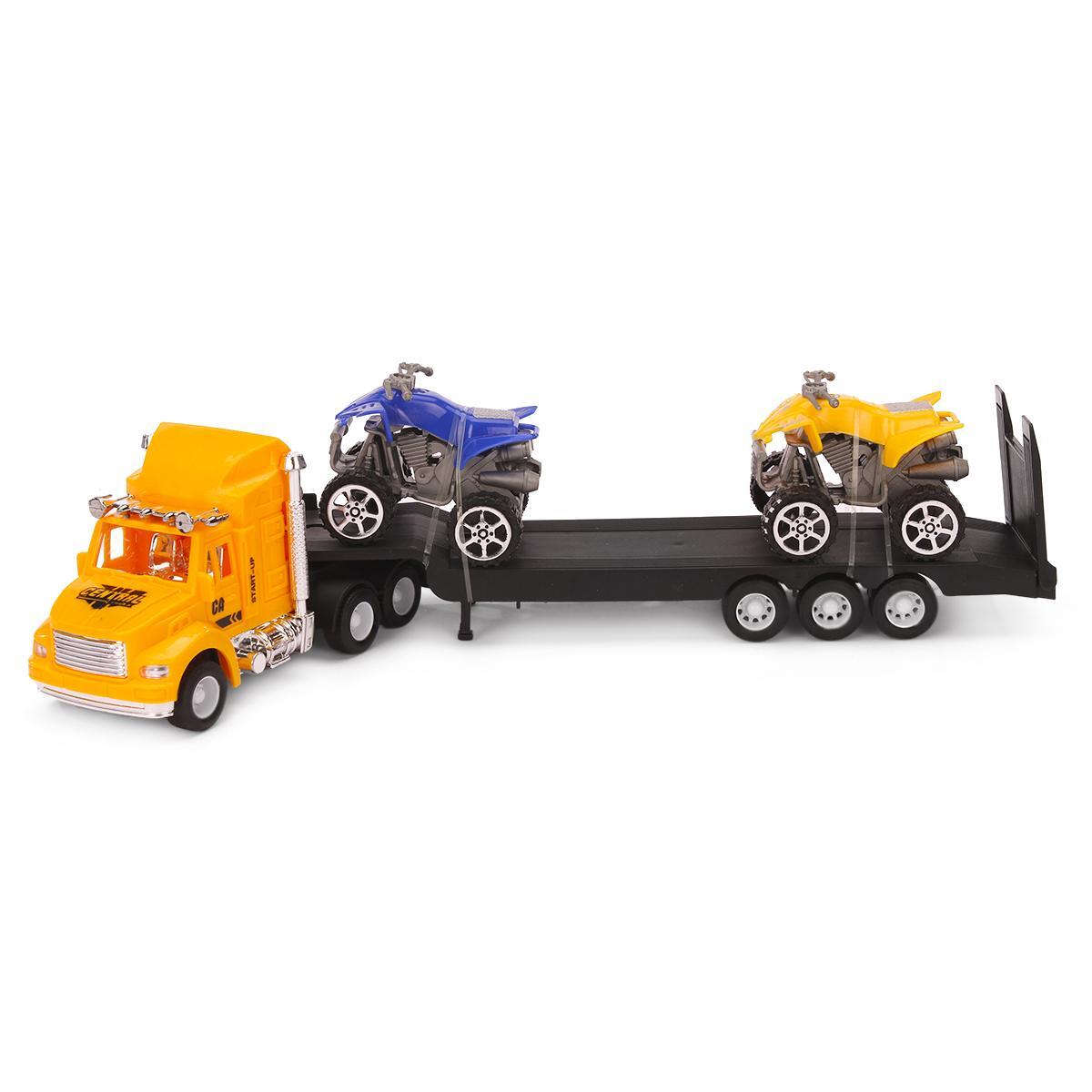 Инерционный автовоз с 2 квадроциклами "ПК 99A5-3", желтый, синий, серый, пластик
