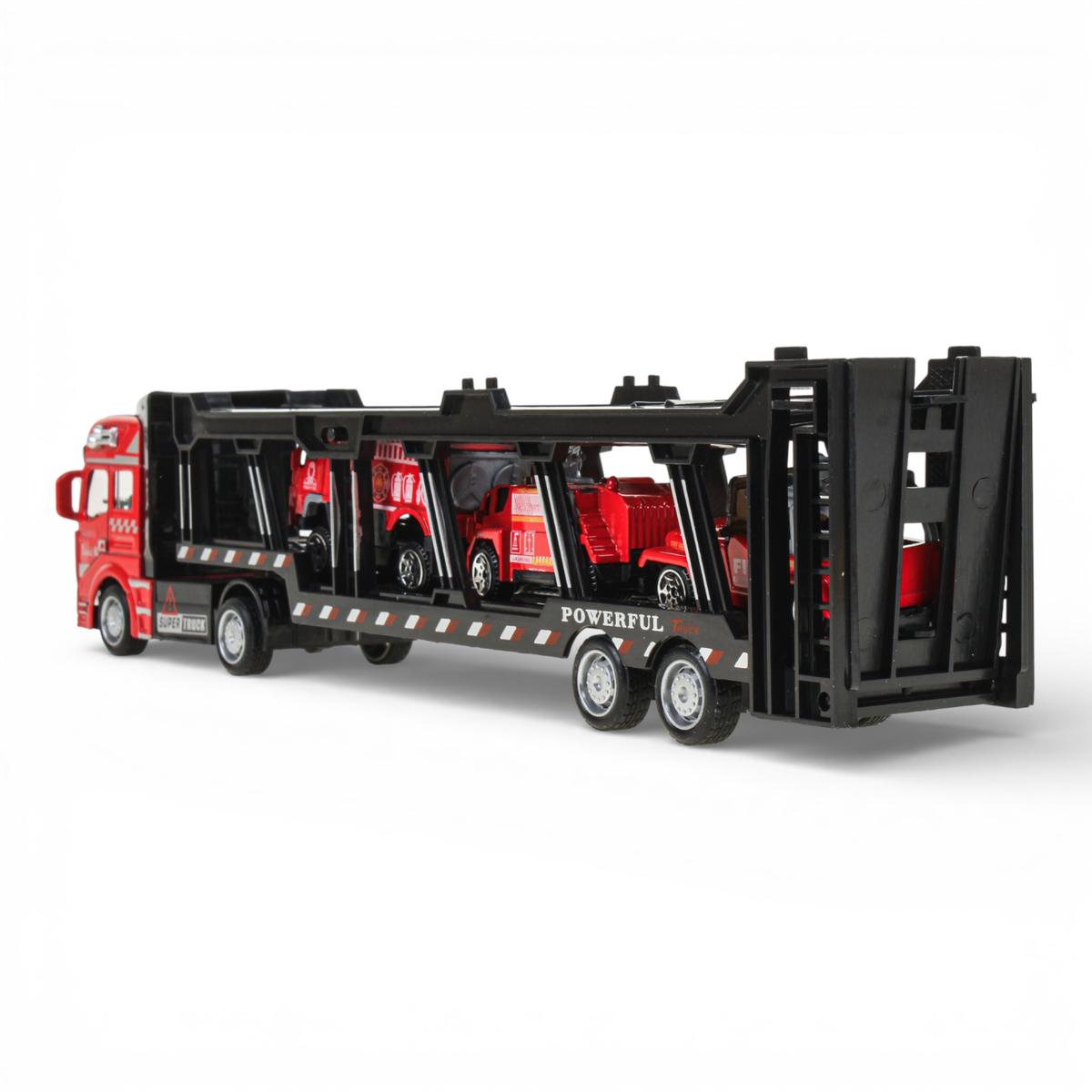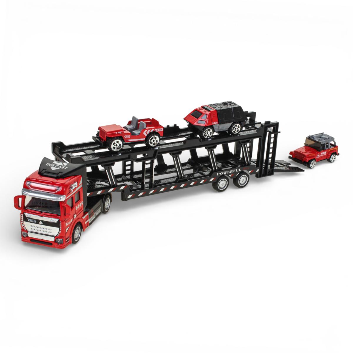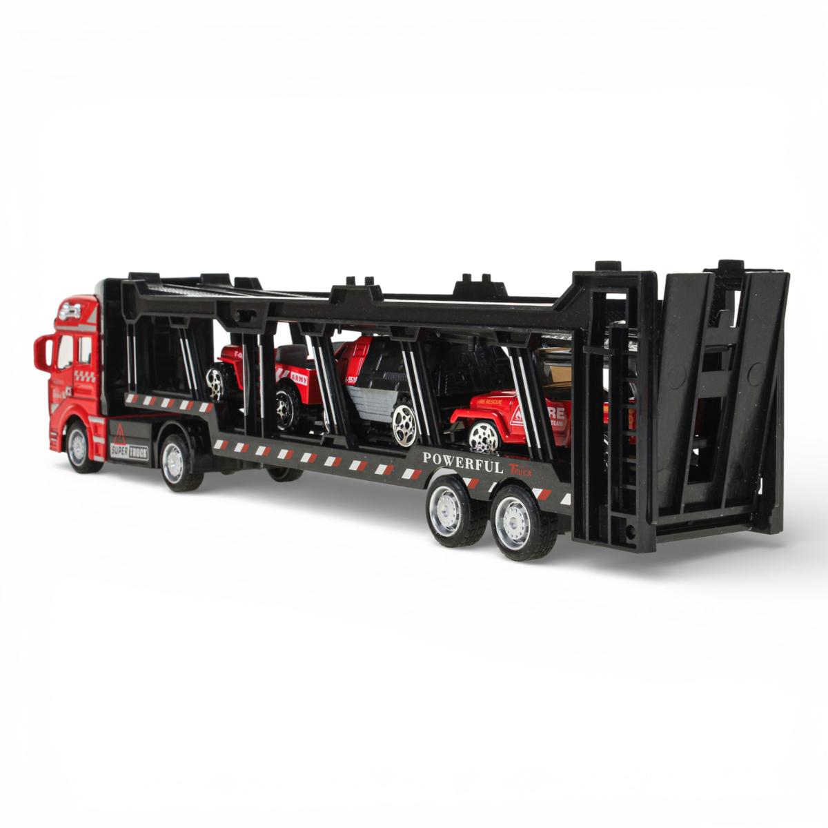 Стильный дизайн – автовоз и машинки имеют детализированный внешний вид с графикой, имитирующей настоящую спецтехнику. Дизайн упаковки в стиле "Truck Series" и надписи "POWERFUL" создают атмосферу мощности и силы.