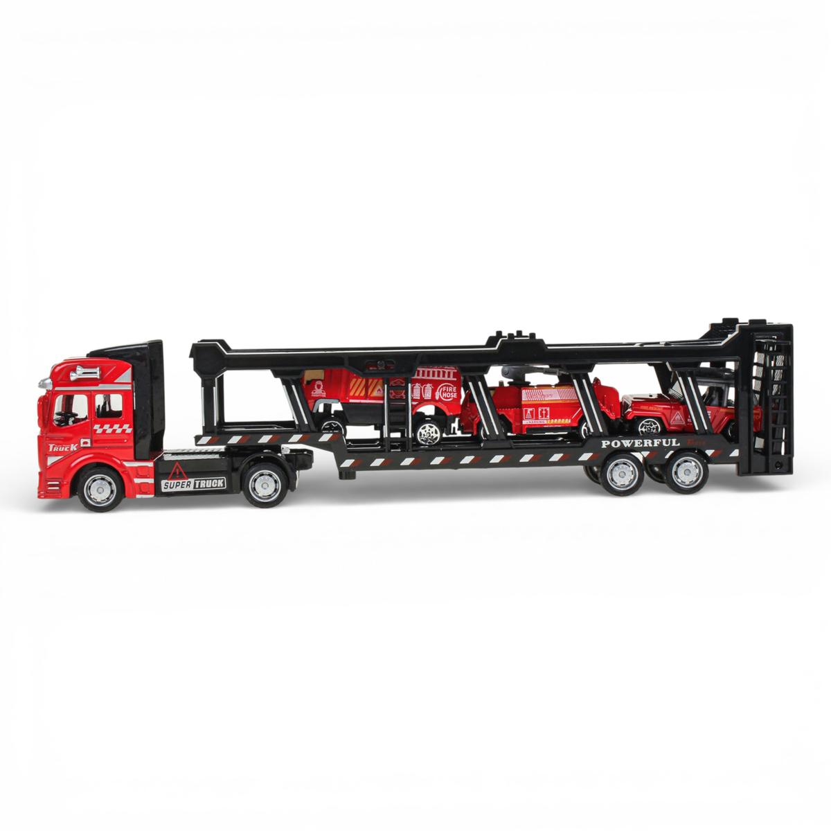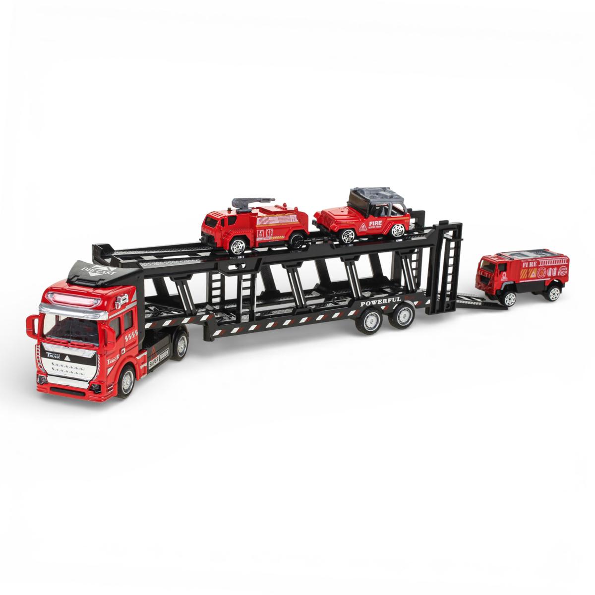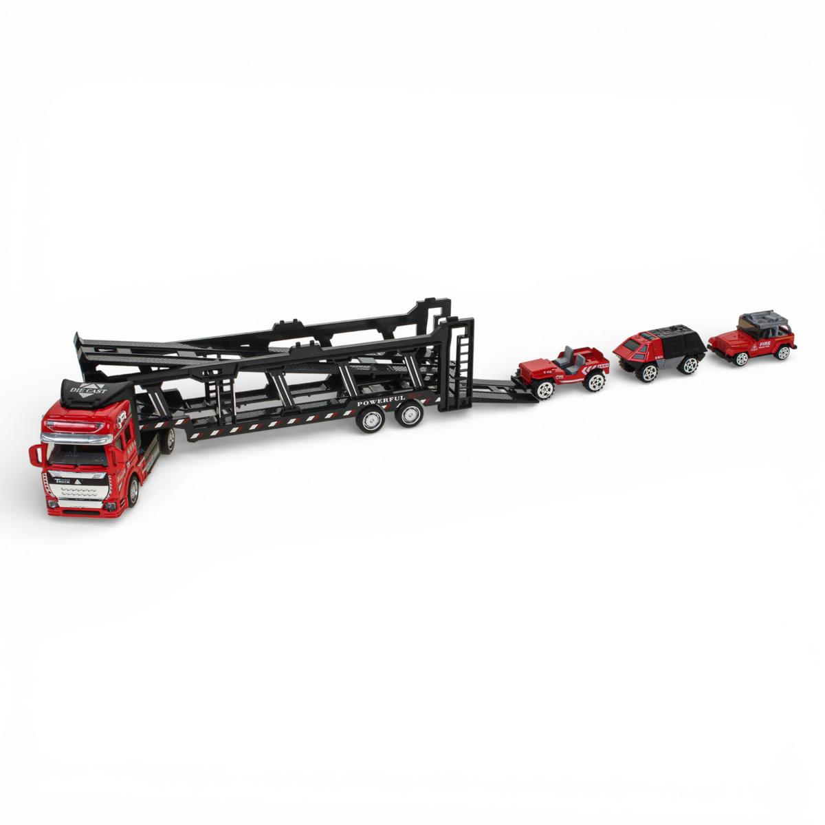Стильный дизайн – автовоз и машинки имеют детализированный внешний вид с графикой, имитирующей настоящую спецтехнику. Дизайн упаковки в стиле "Truck Series" и надписи "POWERFUL" создают атмосферу мощности и силы.